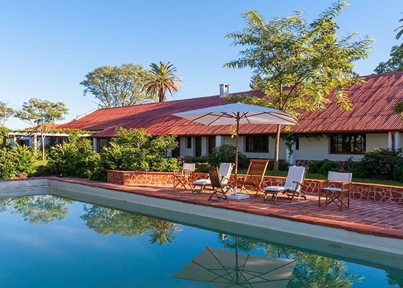 Located in the Iberá Wetlands, Rincón del Socorro is part of a natural reserve run by the Conservation Land Trust, who care for its environment through a group of biologists and veterinarians running different restoration and reintroduction programs of species. The main house on the estancia, “El Casco,” was built in 1896 in the classic Spanish estancia style and has been renovated and transformed into a hosteria. The property is filled with gardens and century-old trees, and sits next to a lagoon that is home to carpinchos, small alligators, and a multitude of bird species. Each room is uniquely decorated, and the property features a restaurant and bar, gardens, and a swimming pool. The hotel offers a variety of activities and excursions, including guided treks, horseback riding, boat rides, nocturnal 4WD safari drives, and a short flight over areas of the Iberá that are otherwise inaccessible.
