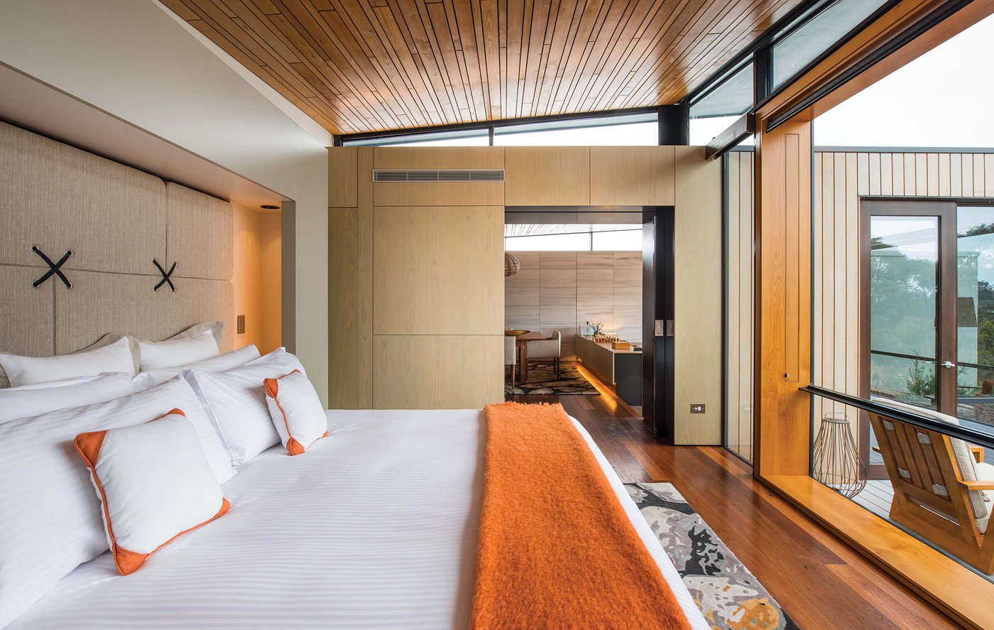 Saffire Freycinet is a luxury lodge located on Tasmania’s east coast, overlooking Great Oyster Bay and the striking Hazards mountain range. The property features a collection of spacious, private suites designed with floor-to-ceiling windows, contemporary furnishings, and premium amenities including deep soaking tubs, in-suite dining, and personalized service. On-site facilities include a fine dining restaurant showcasing seasonal Tasmanian produce, a day spa, lounge, and fitness center. With its secluded setting and emphasis on tailored service, Saffire offers an immersive and refined experience in the heart of Freycinet Peninsula.