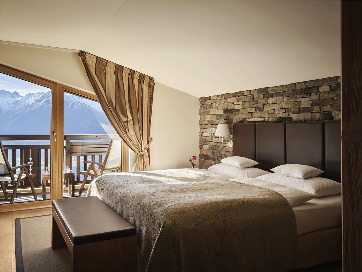 Interalpen-Hotel Tyrol is a 5-star luxury resort set on 75 acres of parkland above Seefeld in Tirol with panoramic views of the surrounding Alps. Guest rooms and suites feature classic alpine-elegant interiors with many offering balconies or terraces, and several restaurants and bars serve regional and international cuisine, including fine-dining options. Facilities include a large spa with multiple indoor and outdoor swimming pools, steam bath, saunas, infrared cabin, treatment rooms, and a gym, plus golf facilities, tennis courts, a yoga studio, and direct access to hiking trails.