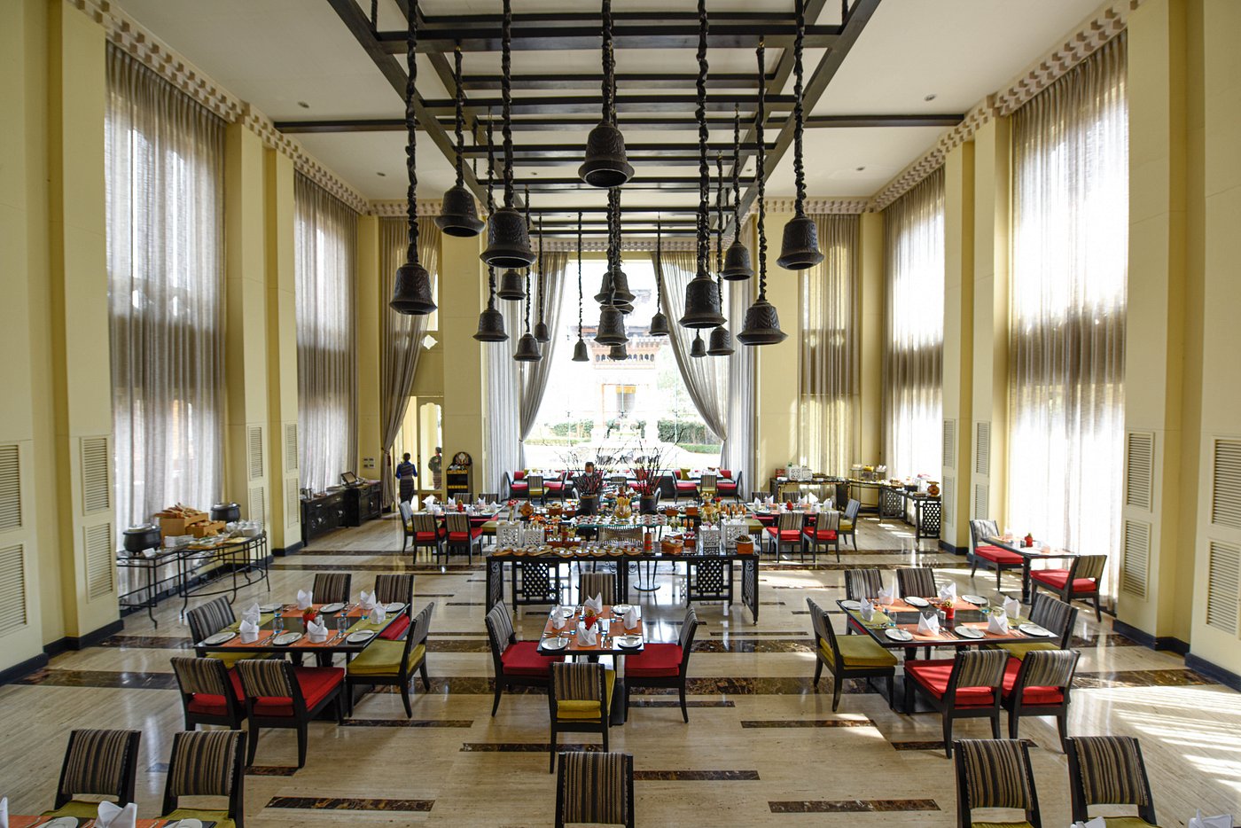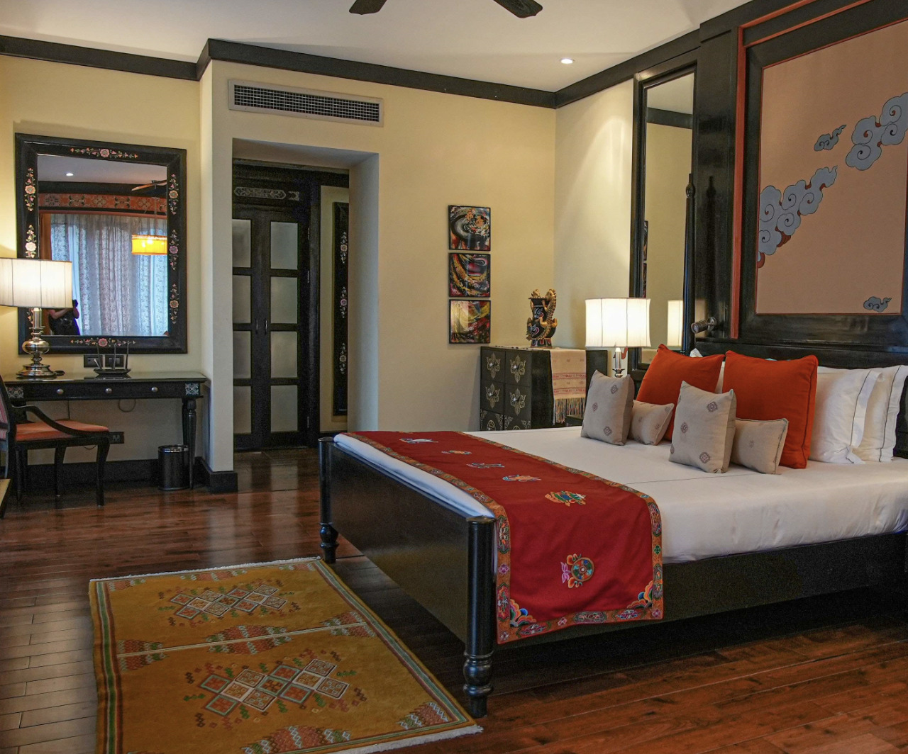 Pemako Thimphu is a centrally located luxury hotel in the middle of Bhutan's capital city. Its 66 rooms are adorned with traditional art and hand-drawn murals, and have amenities such as WiFi, warm wooden accents, and views over the city and mountains. The hotel's restaurants feature both International and Bhutanese cuisine, and guests can enjoy both a cocktail and tea bar. There's also a Bhutanese spa, a gym,