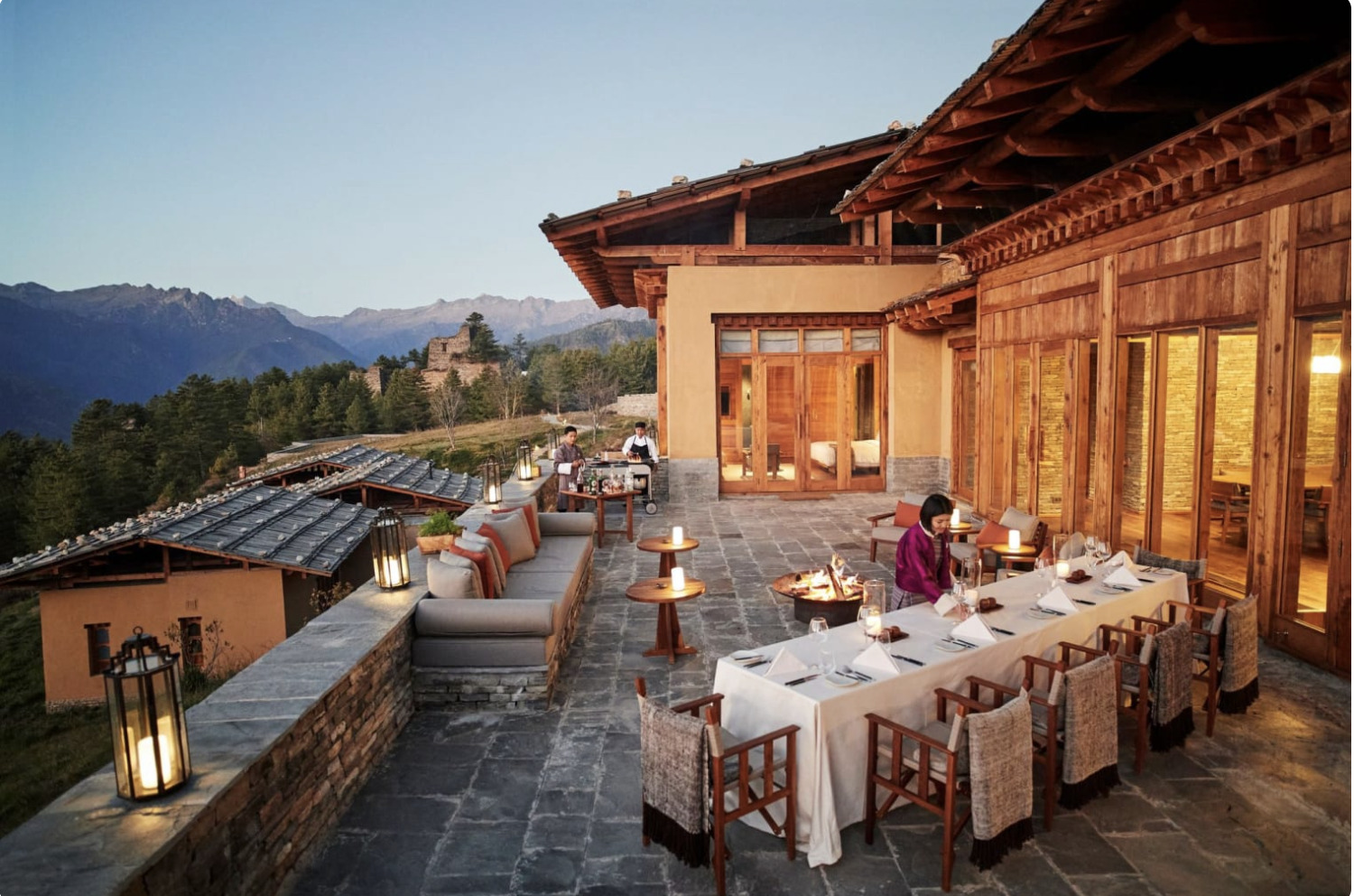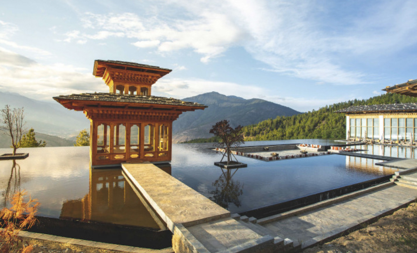 Situated within apple orchards and pine forests, yet still within reach of the capital’s attractions, Six Senses Thimphu is perched on an auspicious hillside overlooking the shimmering lights of Thimphu. Six Senses Thimphu offers 25 spacious villas and suites, starting from 721 square feet for the Lodge Suites and up to 3,358 square feet for the Three-Bedroom Villa. Yoga and meditation classes are on offer, as well as massage therapy, heated pools, a gym, hot stone baths, and a sauna. The culinary and mixology teams draw inspiration from local herbs and plants, crafting nutritious and tasty menus and cocktails at the onsite restaurant and bar.