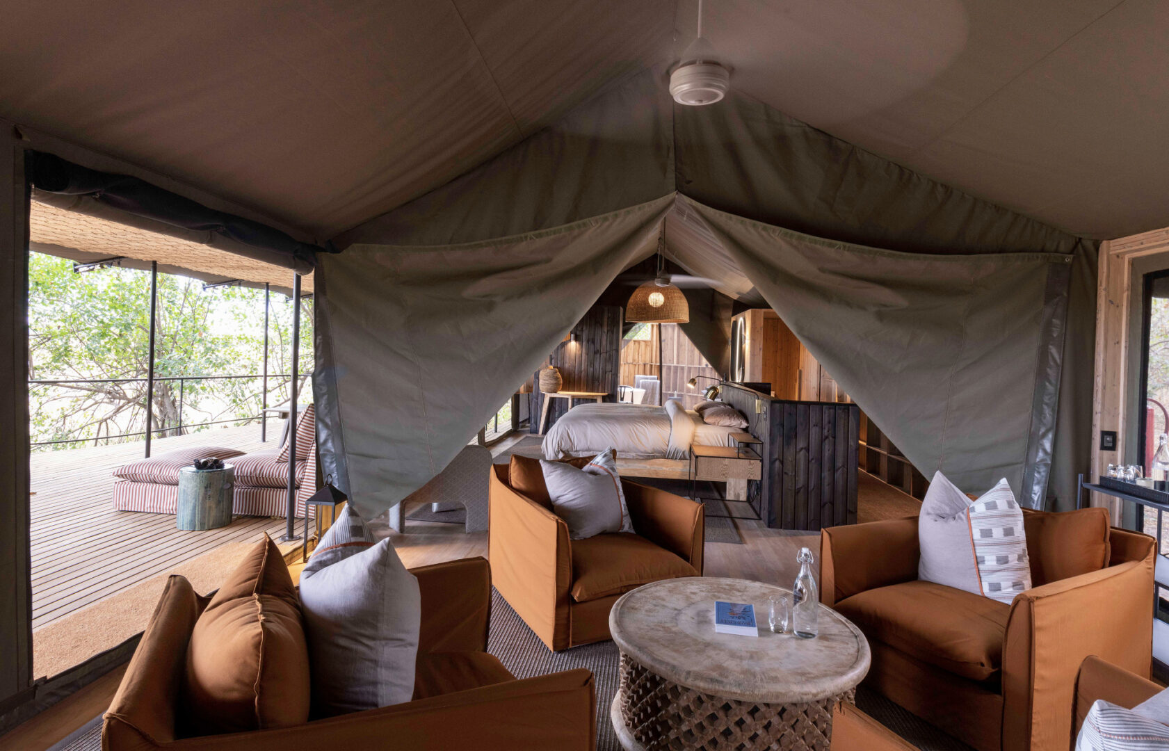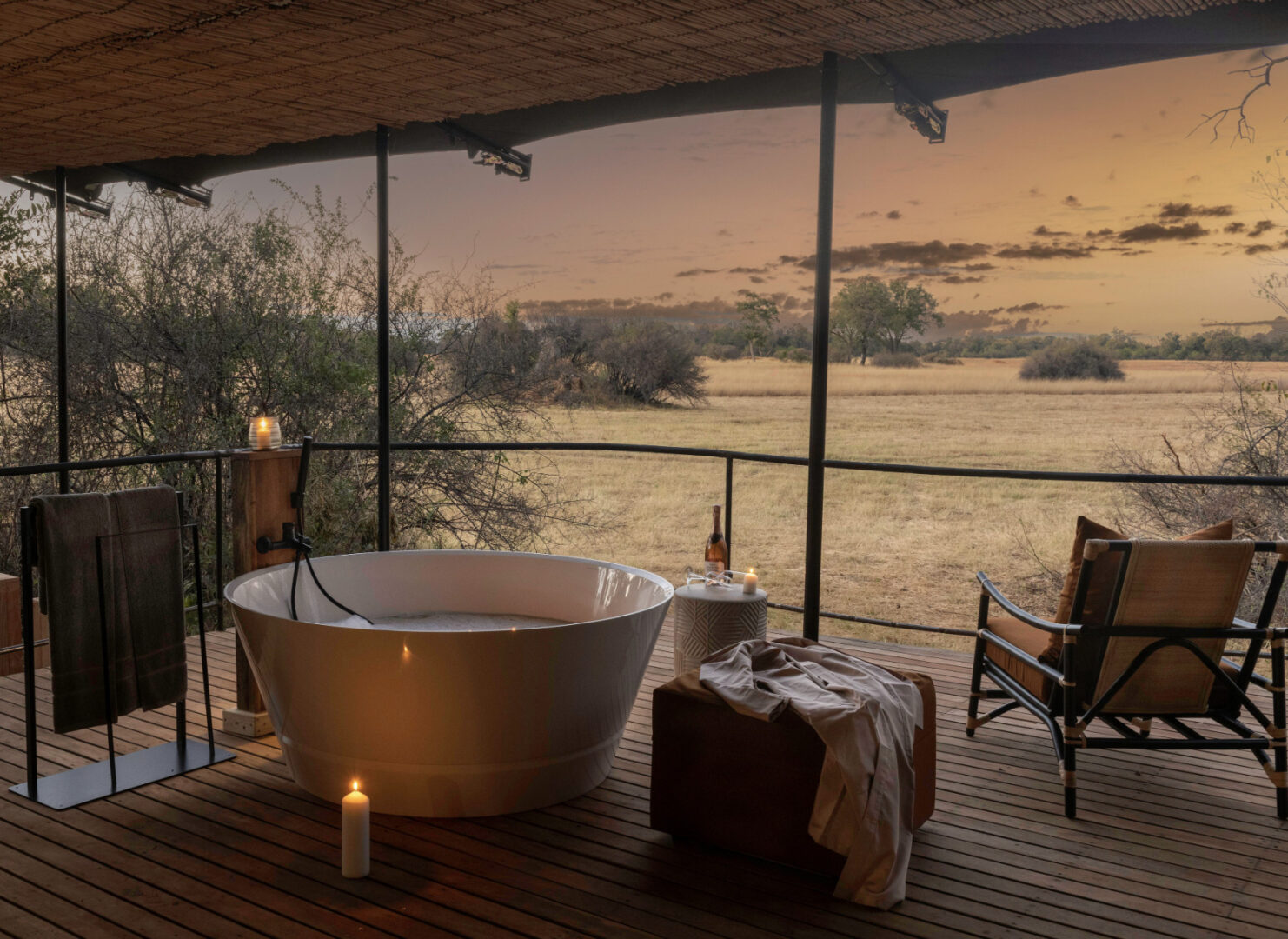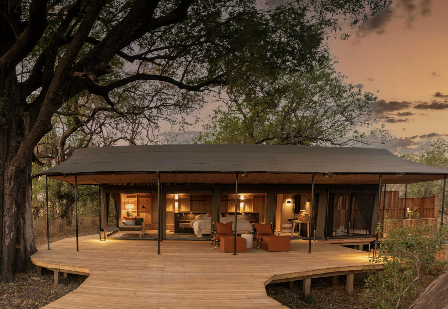Kiri Camp offers a combination of both game drives and water activities (water & flood dependent). Based on a private concession, these activities will take you to some of the more remote areas in the delta, previously inaccessible. Each of the eco-luxury tents are positioned on elevated decks on the side of a slope, offering guests privacy and peak game viewing right from their tent. These designer tents have all the amenities needed for a comfortable stay, with fine details such as high-end toiletries. Enjoy incredible views, fine dining, and elegant lounge spaces with rustic charm.