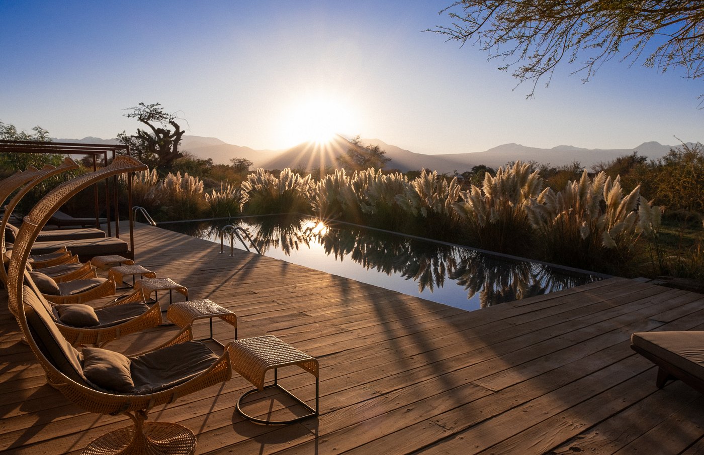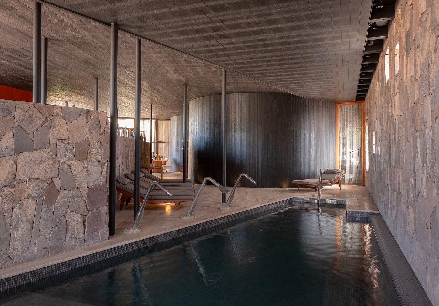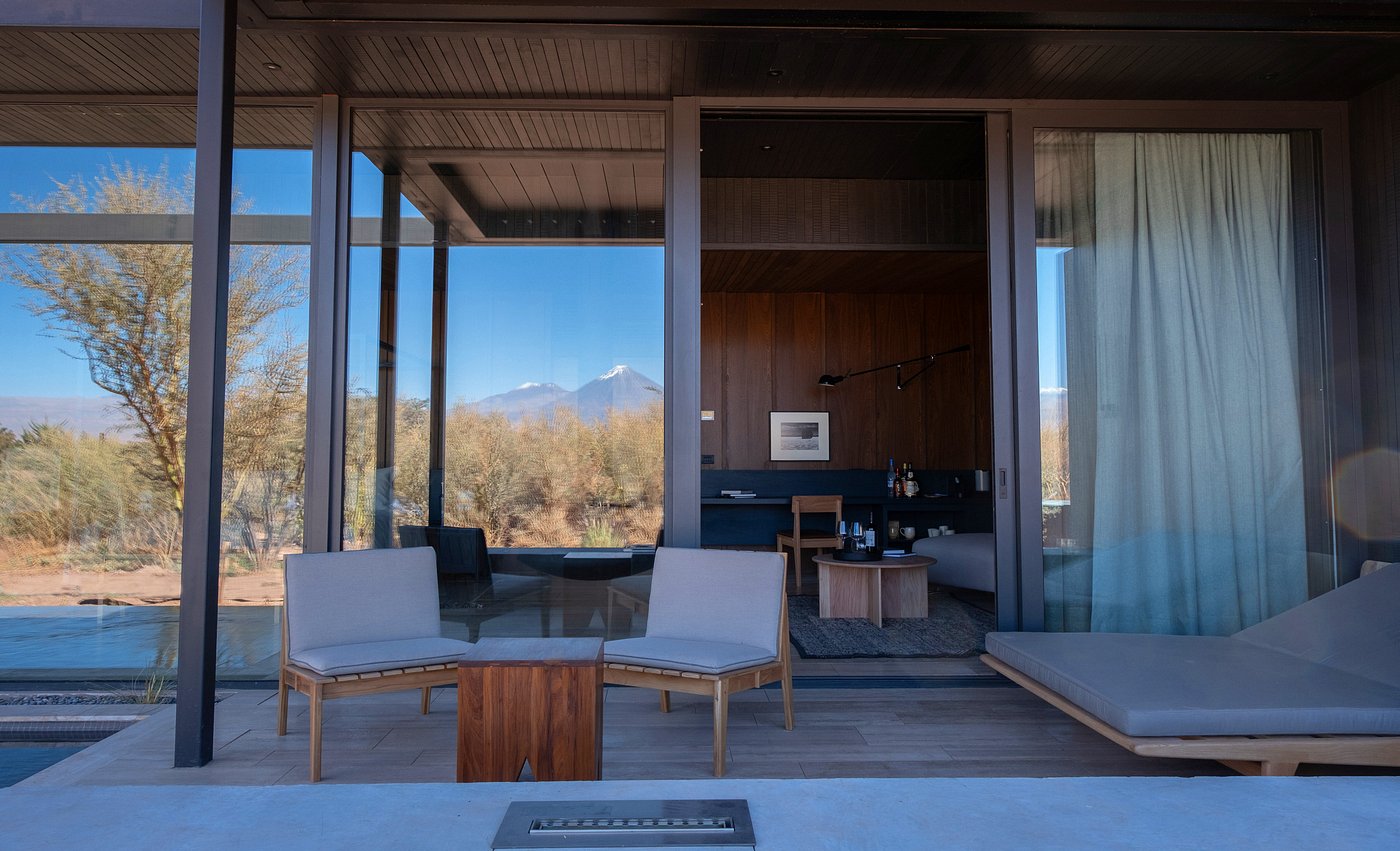 Tierra Atacama is a contemporary desert lodge set on the edge of San Pedro de Atacama, with wide open views toward the Licancabur Volcano and the Atacama’s sweeping salt flats. The property features adobe-inspired rooms and suites with private terraces, outdoor showers in select categories, and large windows framing the desert landscape. Facilities include an expansive spa with indoor and outdoor pools, a steam room and Jacuzzi, a restaurant and bar, and tranquil gardens shaded by native trees. The lodge’s architecture incorporates local materials and open-air spaces that connect guests directly to the stark beauty of the Atacama Desert.