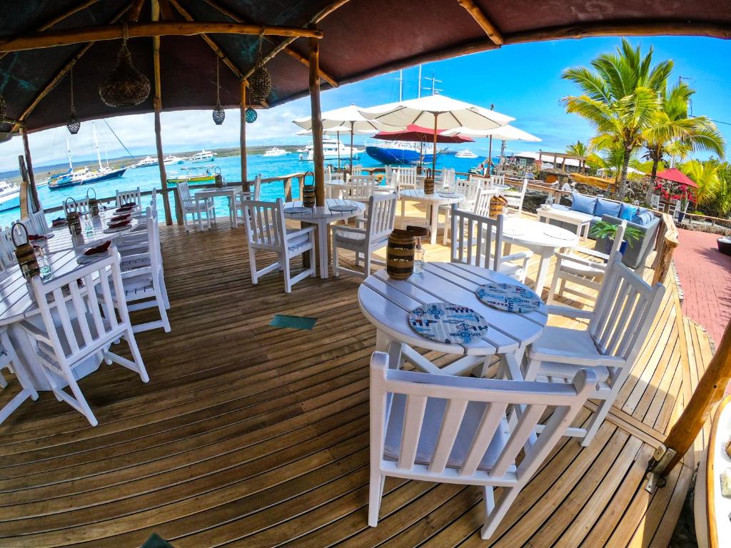 Constructed of local materials such as lava rocks and driftwood, the Angermeyer Waterfront Inn sits on the waterfront in the area known as “Punta Estrada,” just across the bay from Puerto Ayora. This historic hotel was constructed around the Angermeyer Cave, which once housed some of the earliest settlers of the Galapagos. The original Angermeyer Cave forms the Inn’s reception and lounge area, while two other buildings hold 16 rooms with different layouts. The hotel also offers water-side dining with exception views of the bay.