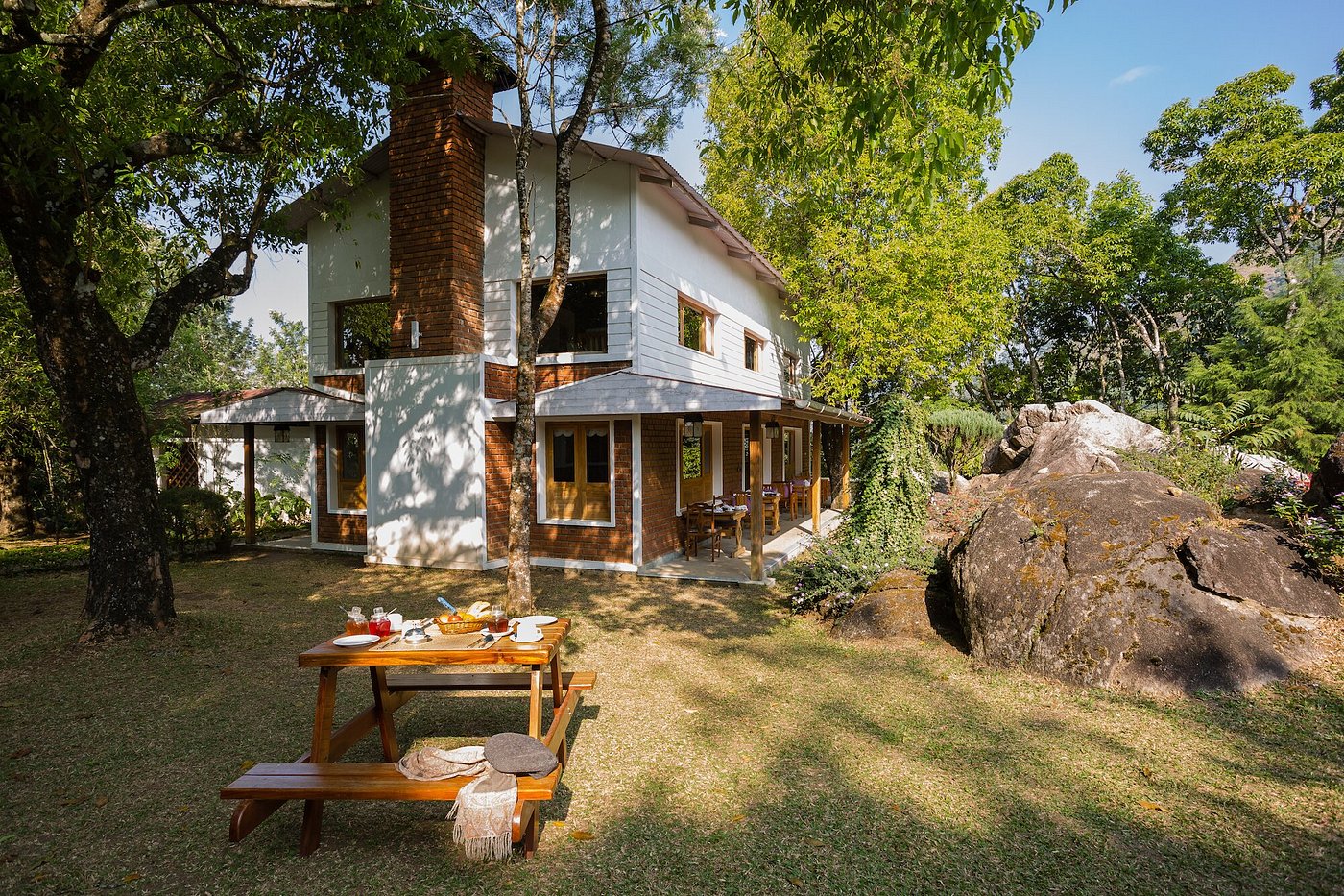 The Windermere Estate is an 18 room plantation retreat surrounded by the cardamom, coffee and tea hills of Munnar. Established as an estate in the 1940s, Windermere recreates the essence of an estate home devoid of a hotel atmosphere with a unique blend of simplicity and luxury wrapped in old world charm. Guests can enjoy rambling walks around the plantation and the surrounding tea gardens, a dip in the pool with views of the surrounding hills, or cozying up with a book in the quiet library. The restaurant serves thoughtfully crafted, locally sourced cuisine, and guests often gather in the gazebo for coffee and a snack or under the estate’s famous boulder for a barbecue and bonfire.