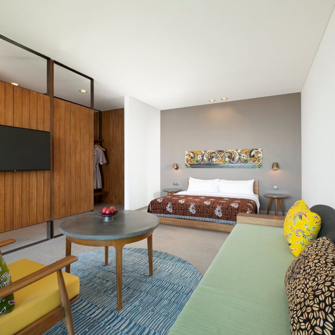 Dialoog Banyuwangi is a sleek, contemporary beachfront hotel overlooking the Bali Strait, designed with minimalist architecture and open spaces that blend sea and nature. Rooms feature floor-to-ceiling windows, private terraces, and rain showers, many with direct ocean views. The property offers a beachfront infinity pool, a spa with locally inspired treatments, and a restaurant serving modern Indonesian and international cuisine. Additional amenities include a fitness center, bar, and curated experiences such as snorkeling and cultural excursions.