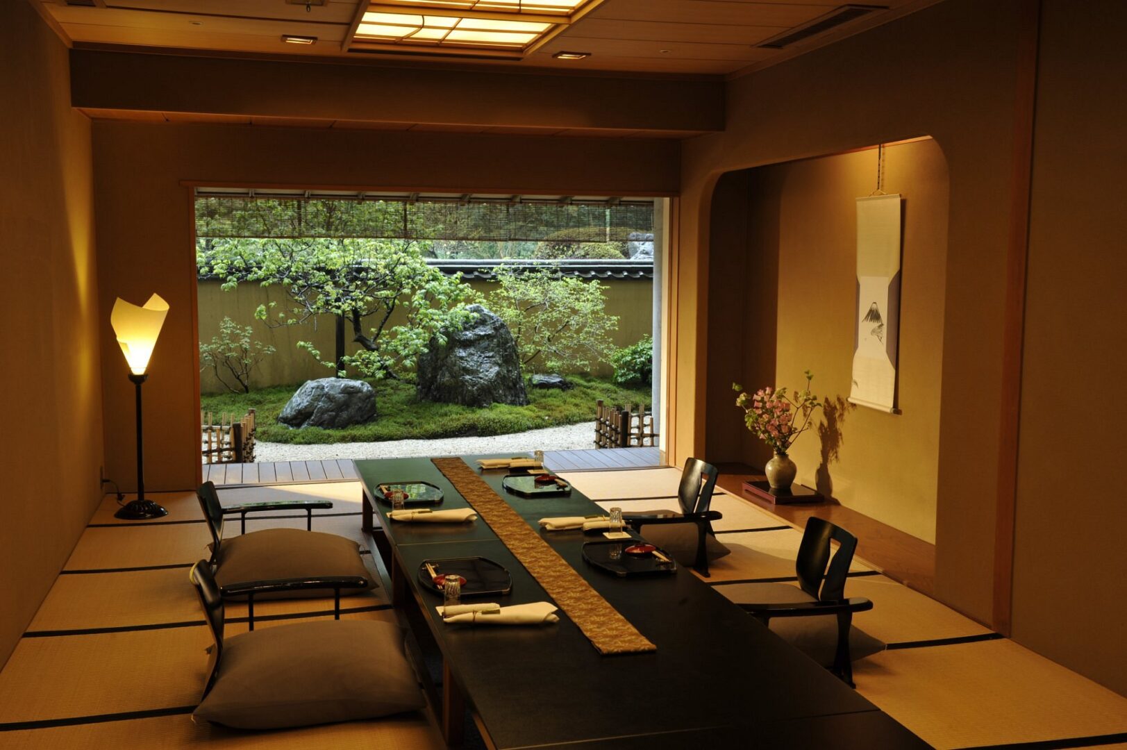 Gora Kadan is a family-run ryokan located on the grounds of Kan’in-no-miya Villa, the former summer villa of a member of the Imperial Family in the town of Gora in Hakone. This ryokan blends Japanese tradition along with modern design elements, and features a large indoor swimming pool, several onsen with hot springs waters, a spa and massage room, and a gym. The onsite restaurant serves authentic kaiseki cuisine, prepared with local, seasonal ingredients. The spacious, calming rooms look out onto rolling hills and forests, and the manicured Japanese gardens offer total peace and serenity.