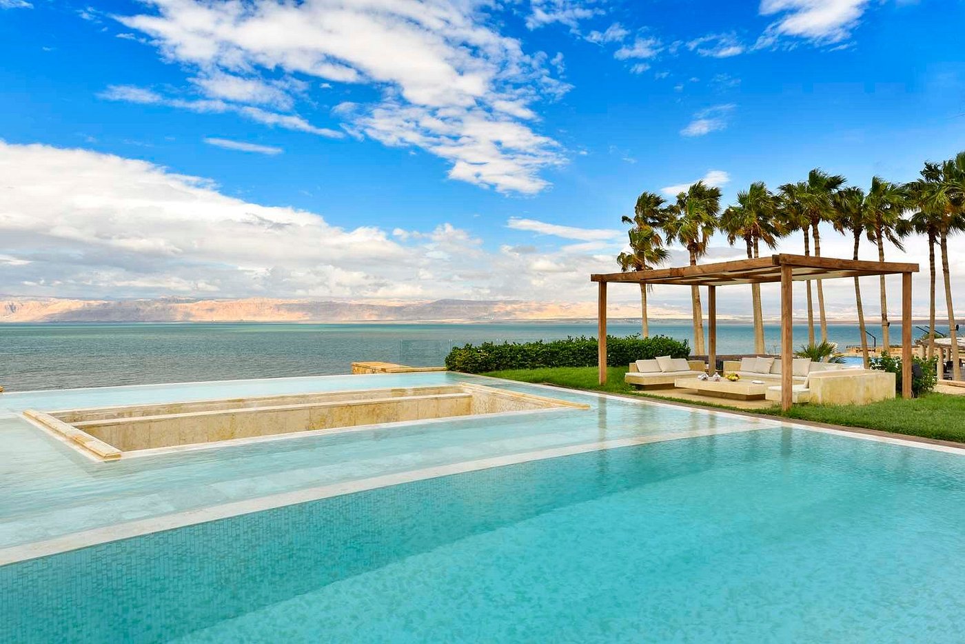 Situated gracefully on the shores of the Dead Sea, unique for its ozone-rich air and mineral sea water, is the Kempinski Hotel Ishtar Dead Sea. This 5-star luxury resort is inspired by the Hanging Gardens of Babylon, and offers 345 rooms and suites, 9 freshwater swimming pools, a state-of-the-art gym, a spa offering Thai massages or hammam sessions, a private stretch of beach on the shores of the Dead Sea, and a diverse range of dining options.