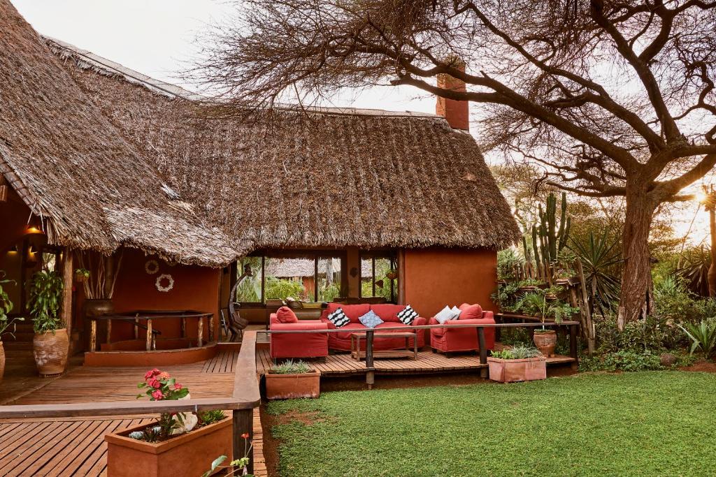 Tawi Lodge is a boutique eco-lodge set on a private conservancy near Amboseli National Park, with uninterrupted views of Mount Kilimanjaro. The property features thatched cottages with stone fireplaces, freestanding tubs, outdoor showers, and private verandas facing a busy waterhole. Facilities include a swimming pool shaded by acacia trees, a spa offering massage treatments, and a dining area serving farm-to-table cuisine. Built with sustainable materials and powered partly by solar, the lodge maintains a strong focus on conservation and community partnerships.