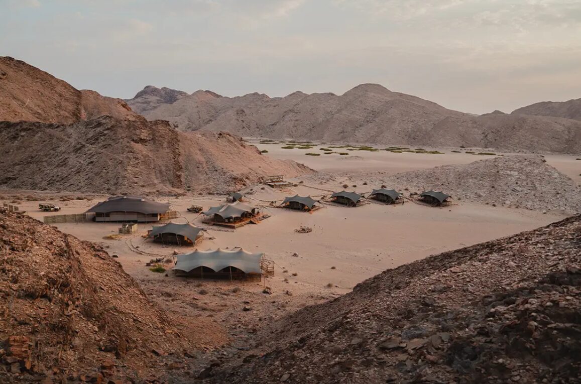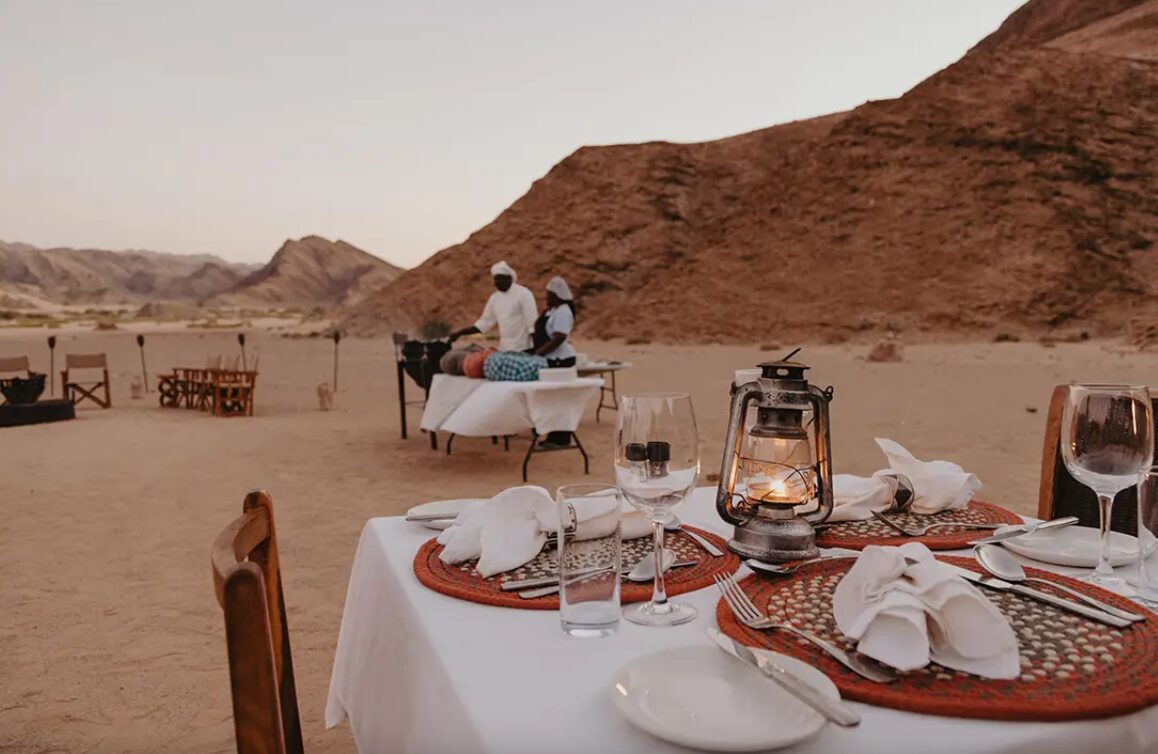 Hoanib Valley Camp has an intense focus on sustainability, with the aim of preserving this unique and fragile ecosystem. The camp is run entirely on solar power, and each tent sits on decks made of a wood, bamboo, and 70% recycled-material composite. Tent materials are sourced locally, with hand-carved furniture lovingly shaped by tribal carvers, and baskets woven by the women of the Omba Project in Windhoek.