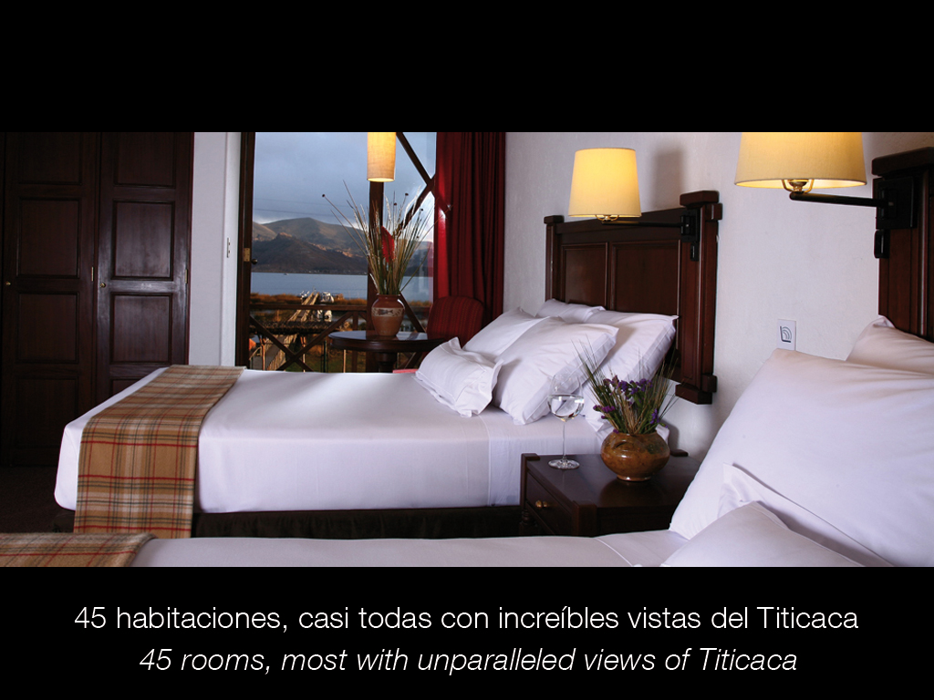 This hotel sits right on Lake Titicaca, next to the town of Puno. The majority of its 46 rooms have lake views. A glass wall in the restaurant also gives views of the lake and gardens. Unique among Puno hotels, oxygen is available in all rooms (a bonus for guests having difficulty adapting to the altitude, which is 13,000 feet). This is a top hotel option in the town of Puno.