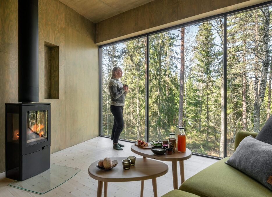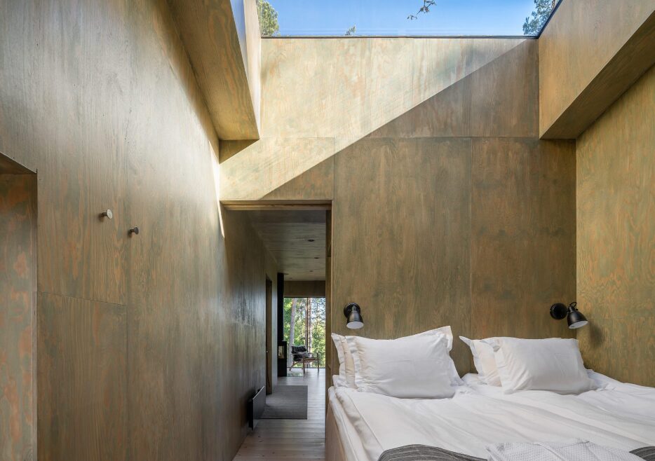 Trakt Forest Hotel is a minimalist retreat hidden in the forests of southern Sweden, offering a deep connection with nature through its elevated timber cabins designed by architect Gert Wingårdh. Each cabin features floor-to-ceiling windows, natural wood interiors, and private terraces overlooking the trees. Facilities include a main lodge with a lounge and restaurant serving locally sourced seasonal cuisine, a sauna set beside a forest pond, and walking trails through the surrounding woodland. The hotel emphasizes sustainability, solitude, and Scandinavian design simplicity.
