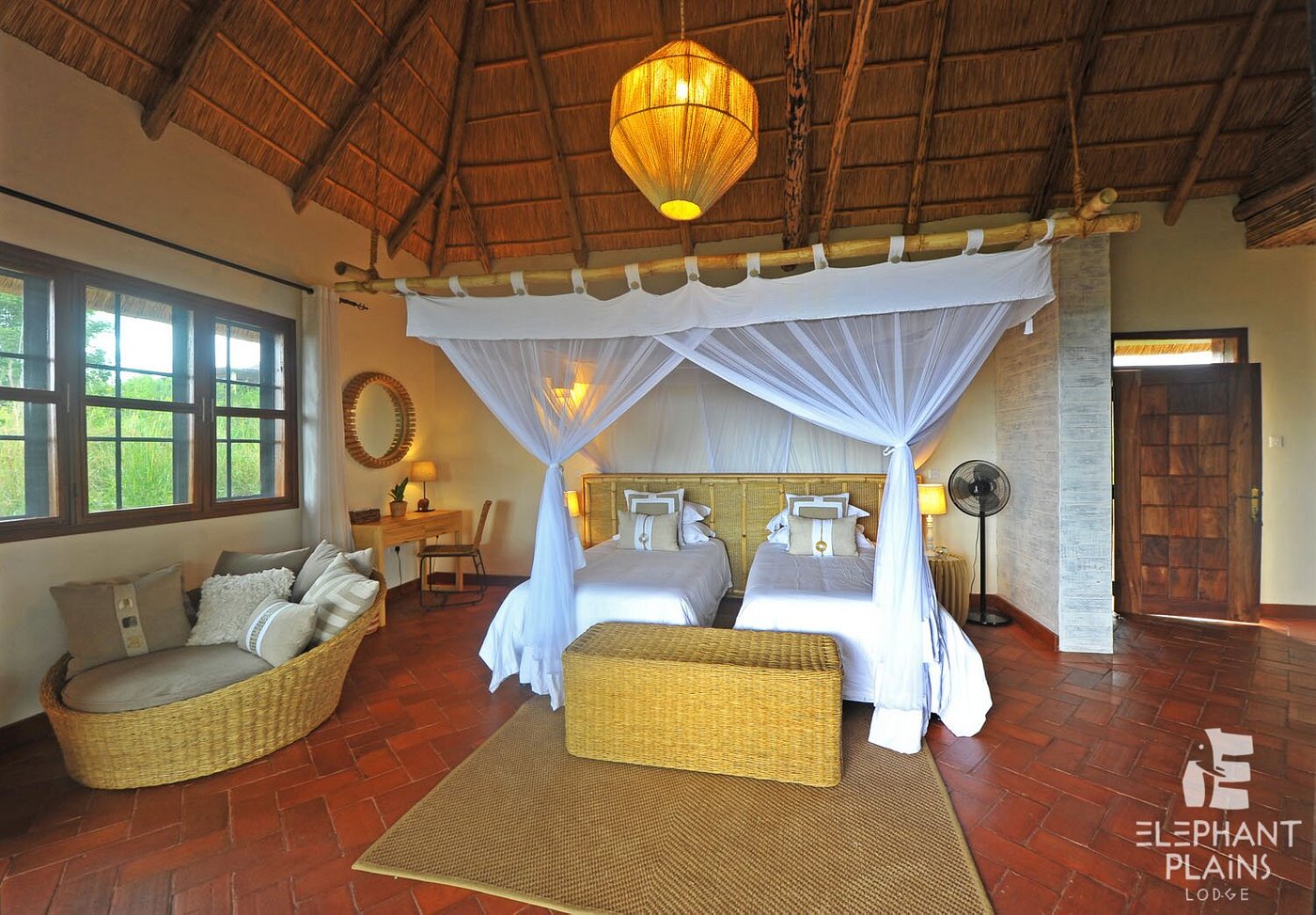 Perched 941 meters above sea level, Elephant Plains is a high-end lodge situated high upon the western escarpment of the Albertine rift in the north east corner of Queen Elizabeeth National Park. The lodge offers panoramic views stretching for miles over the huge open grasslands, all th way to Lake George. Set in 80 acres of pristine wilderness, the area around the lodge has fantastic game viewing, and is a major breeding ground for the Ugandan Kob which regularly attracts lions and other big cats to the area. The lodge offers 10 spacious rooms with en-suite facilities and private verandas, as well as a swimming pool, restaurant, lounge with panoramic views, and a fully stocked bar.