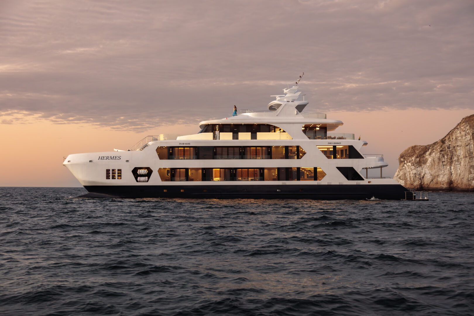 A luxury catamaran in the Galapagos, with panoramic suites and refined design