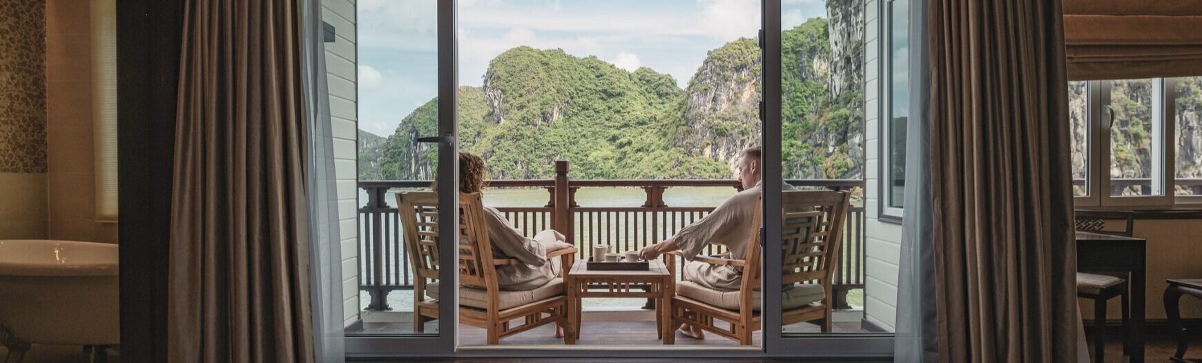 All twelve spacious designer suites offer the highest standard and comfort for a luxury overnight cruise in Lan Ha Bay inclusive of a fantastic bathroom, in-room lounge and private balcony. Guests can choose from either the Regent, Junior, or Signature suites.
