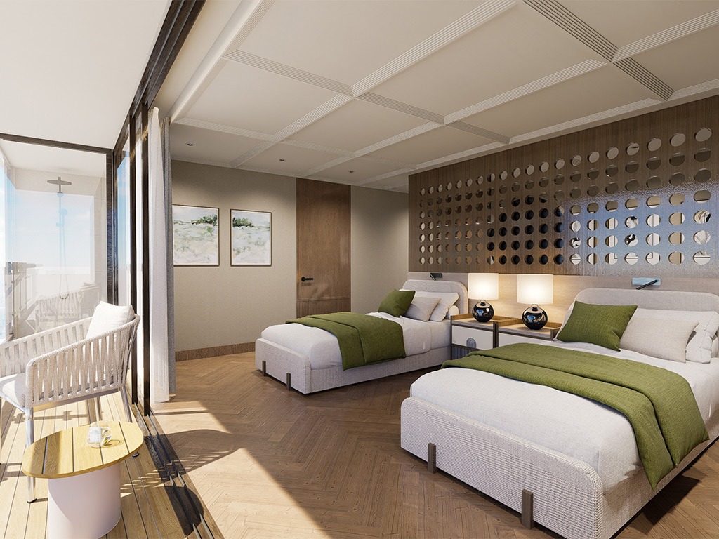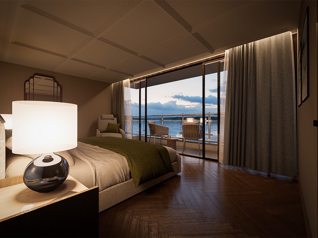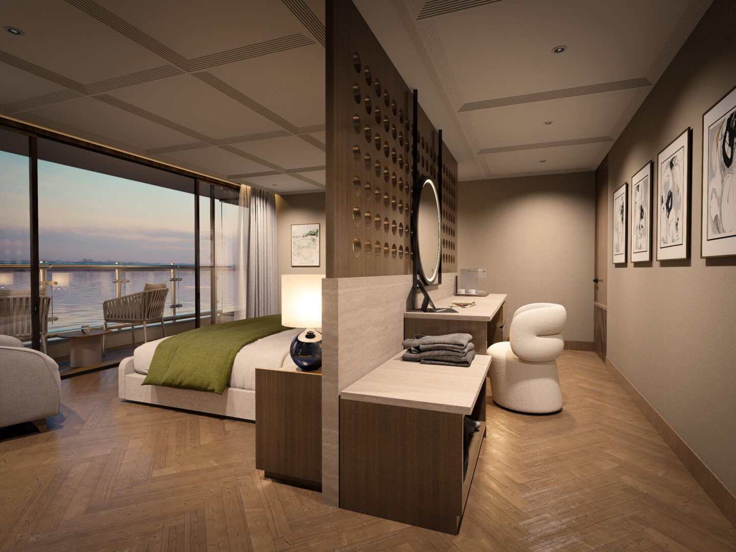 • All suites have private bathrooms, private balconies, individual climate controls and ample storage space for clothing and luggage.