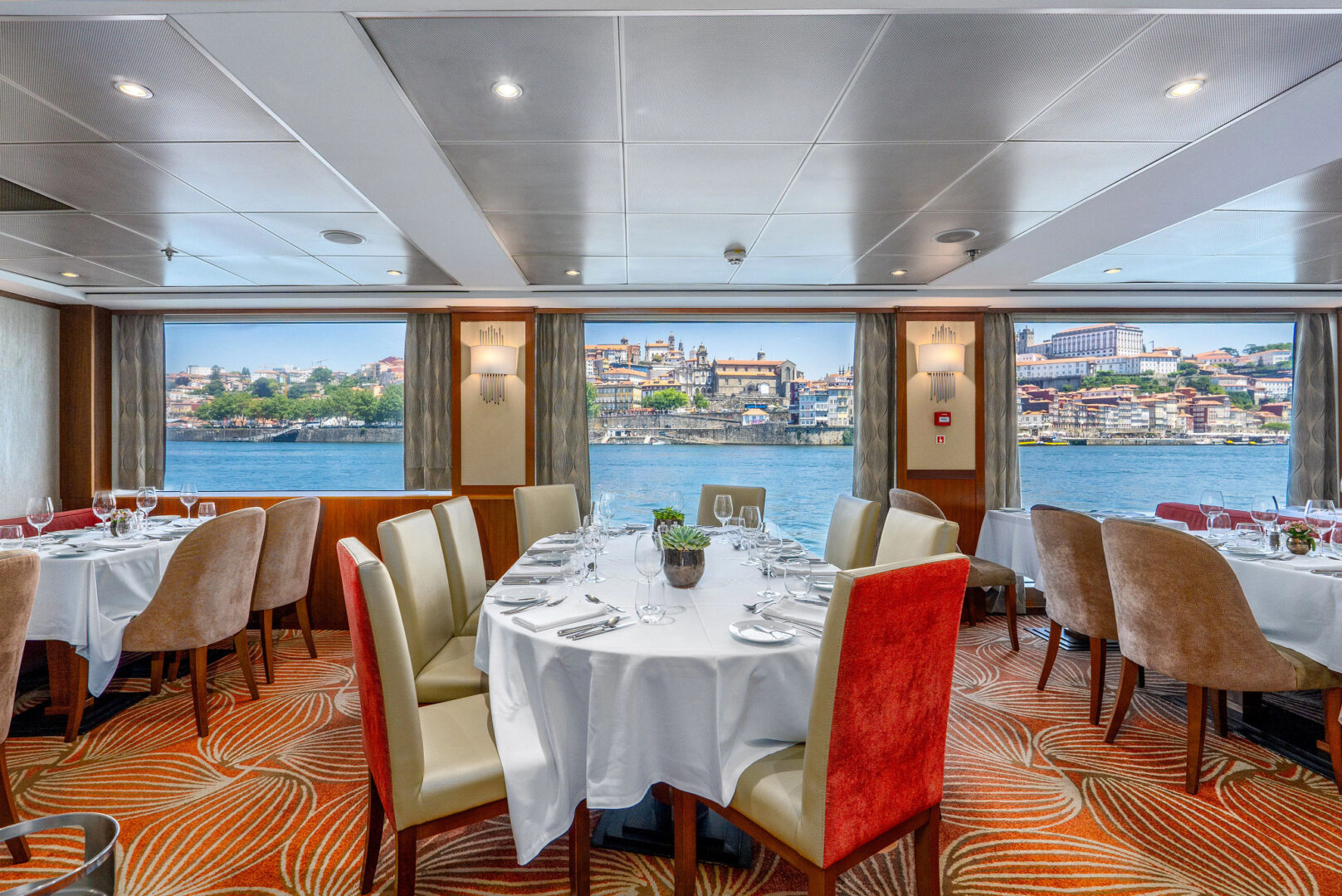 The AmaVida is a stylish river cruise vessel that sails along the Douro River through Portugal and Spain, offering an intimate and comfortable experience with just 51 staterooms. Most cabins feature outside balconies, and amenities include a sun deck with a heated swimming pool, a fitness center, massage and beauty salon, and complimentary Wi-Fi throughout. Guests enjoy regionally inspired cuisine and local wines in the main restaurant and a more intimate chef’s table venue. The AmaVida has décor reflecting classic Portuguese elegance