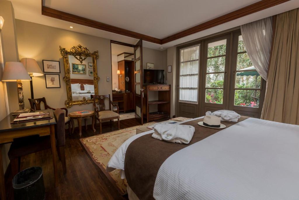 This working hacienda features a dairy and trout farm, a flock of sheep, a cheese factory, an embroidery shop creating exceptionally high-quality textiles, and a stable of horses that you can take on guided rides. Active in conservation and preservation, the hacienda has its own Andean condor rescue project as well as several pre-Colombian burial mounds often being worked on by visiting archeologists. Each of its nine guest rooms has a fireplace and its own unique personality. Meals feature organic vegetables, which are grown on the hacienda premises.
