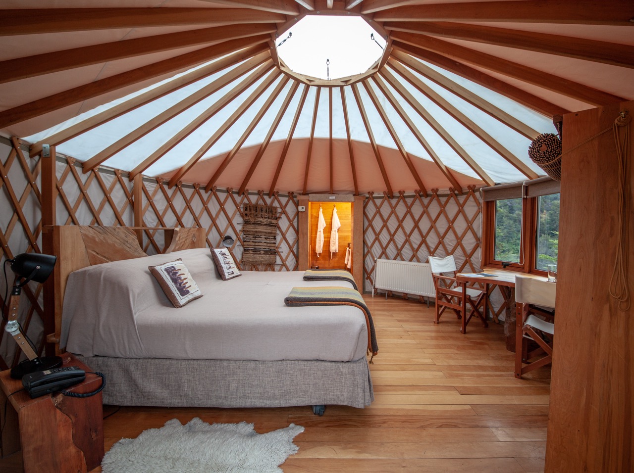 Patagonia Camp is located on a 84,000-acre private reserve amid a native coigüe evergreen forest full of ancient Nothofagus plants like lenga and notros that bloom in spring. Situated on the shores of Lake Toro, the largest lake in the Magallanes region of Chile, the lodge is just 9.5 miles from the main entrance to Torres del Paine National Park and enjoys incredible views of the Macizo del Paine. The complex at Patagonia Camp comprises 20 first class yurts, all of which have view of either Lake Toro and the Paine Massif, or the native forest, as well as a central lodge that serves as a restaurant, bar and lounge. Elevated walkways connect all of the buildings, and the site blends non-intrusively into the surroundings.