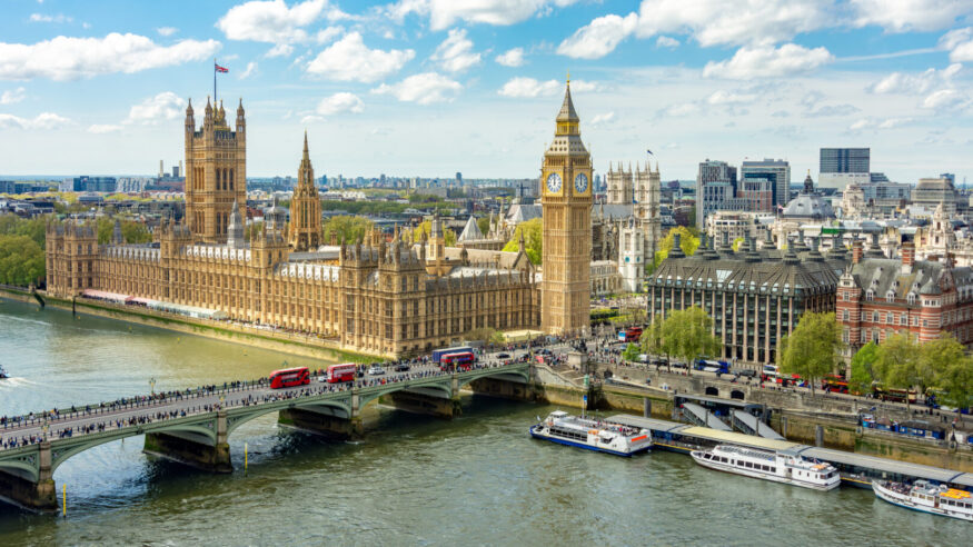London cityscape with Houses of Parliament and Big Ben tower, UK