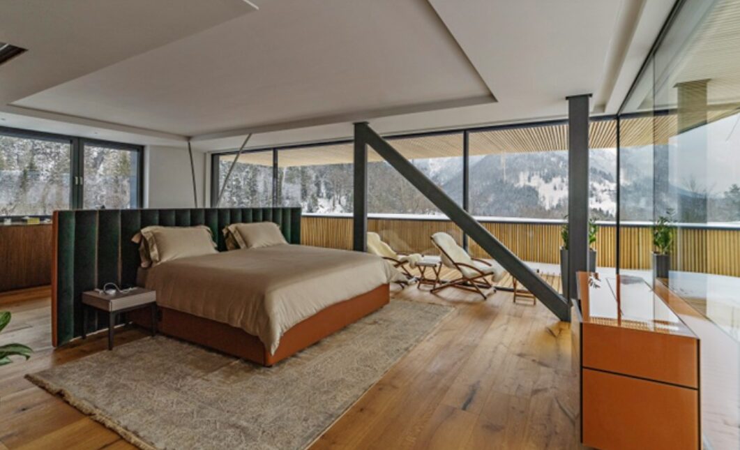 Chalet Sofija is a luxury mountain lodge located in the heart of Slovenia's Julian Alps. Featuring exceptional panoramic mountain views, this modern lodge offers a heated outdoor swimming pool, chic indoor and outdoor lounge spaces, a sauna, a restaurant serving gourmet elevated Western European cuisine, and a cocktail bar.