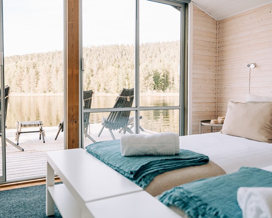 Check out this morning and transfer to the airport for your flight to Luleå, just south of the Arctic Circle. On arrival, meet your local host for a private transfer followed by a short boat ride to your floating camp. Surrounded by quiet forests and mirrored waterways, this peaceful setting captures the natural beauty of northern Sweden. At your cabin, you will have access to complimentary kayaks, canoes, stand-up paddleboards, and fishing gear, making it easy to explore whenever you want.