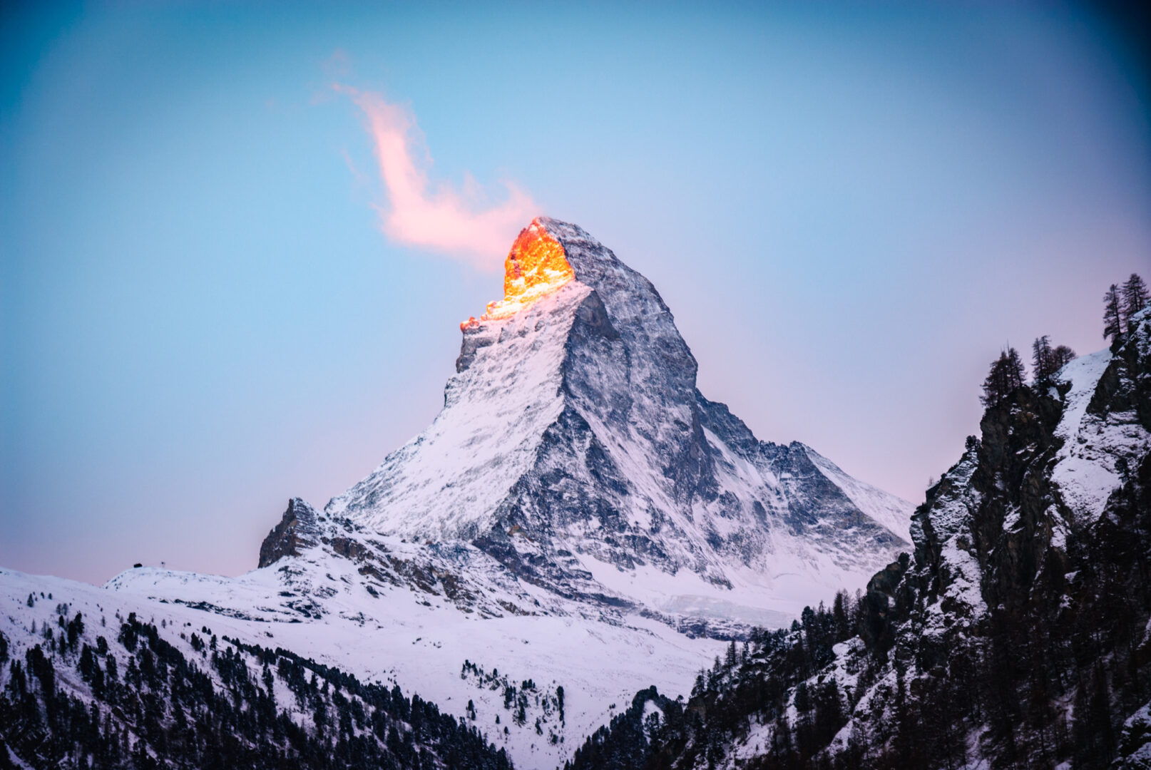 Afterwards, board another train and travel 1.5 hours to Zermatt, your home for the next three nights. Located at the base of the Matterhorn and adorned with charming café-lined streets, upscale shops, traditional chalets, and fine restaurants, Zermatt is a winter fairytale come to life.