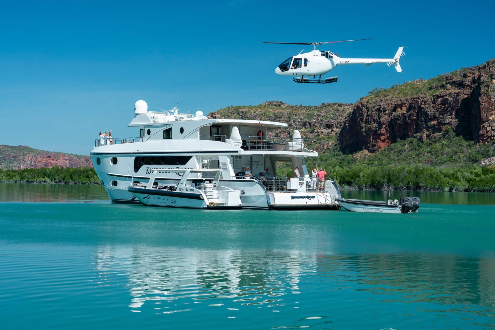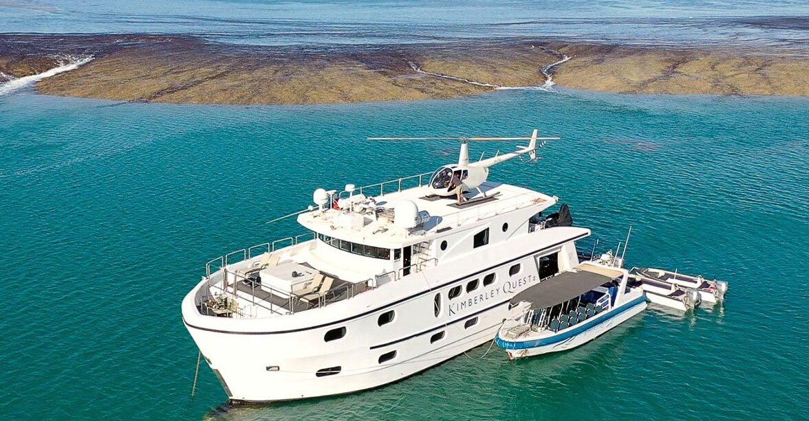 Kimberley Quest II is a boutique vessel designed for navigating the remote waterways of Western Australia’s Kimberley region. Accommodating just 18 guests, the ship offers an intimate cruising experience with simple yet comfortable cabins, air-conditioning, and en-suite bathrooms. Onboard facilities include a shaded alfresco dining area, lounge, and a helideck for optional scenic flights. The vessel is equipped with high-powered tenders for daily excursions to waterfalls, Aboriginal rock art sites, and rugged gorges, allowing for flexible exploration led by experienced guides. Kimberley Quest II is purpose-built for accessing hard-to-reach locations and offers a highly personalized and immersive journey through one of Australia’s most dramatic landscapes.