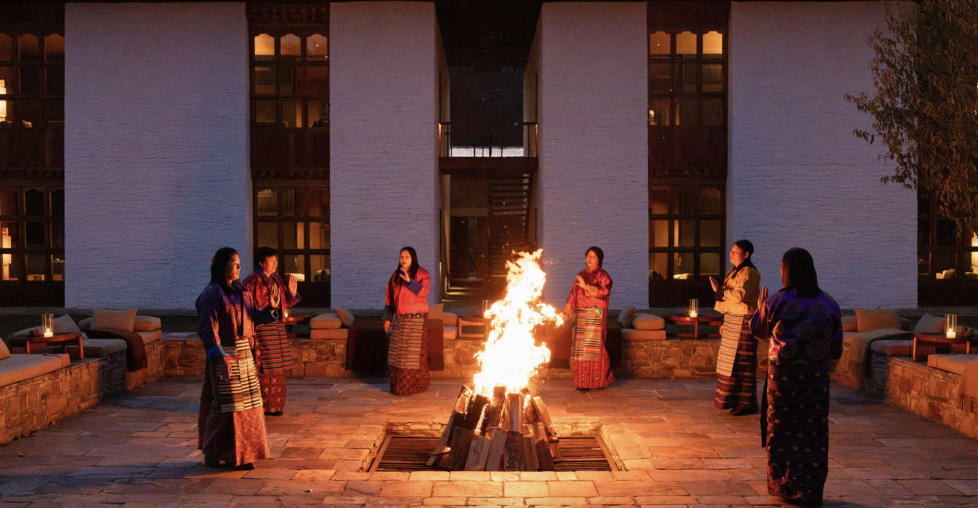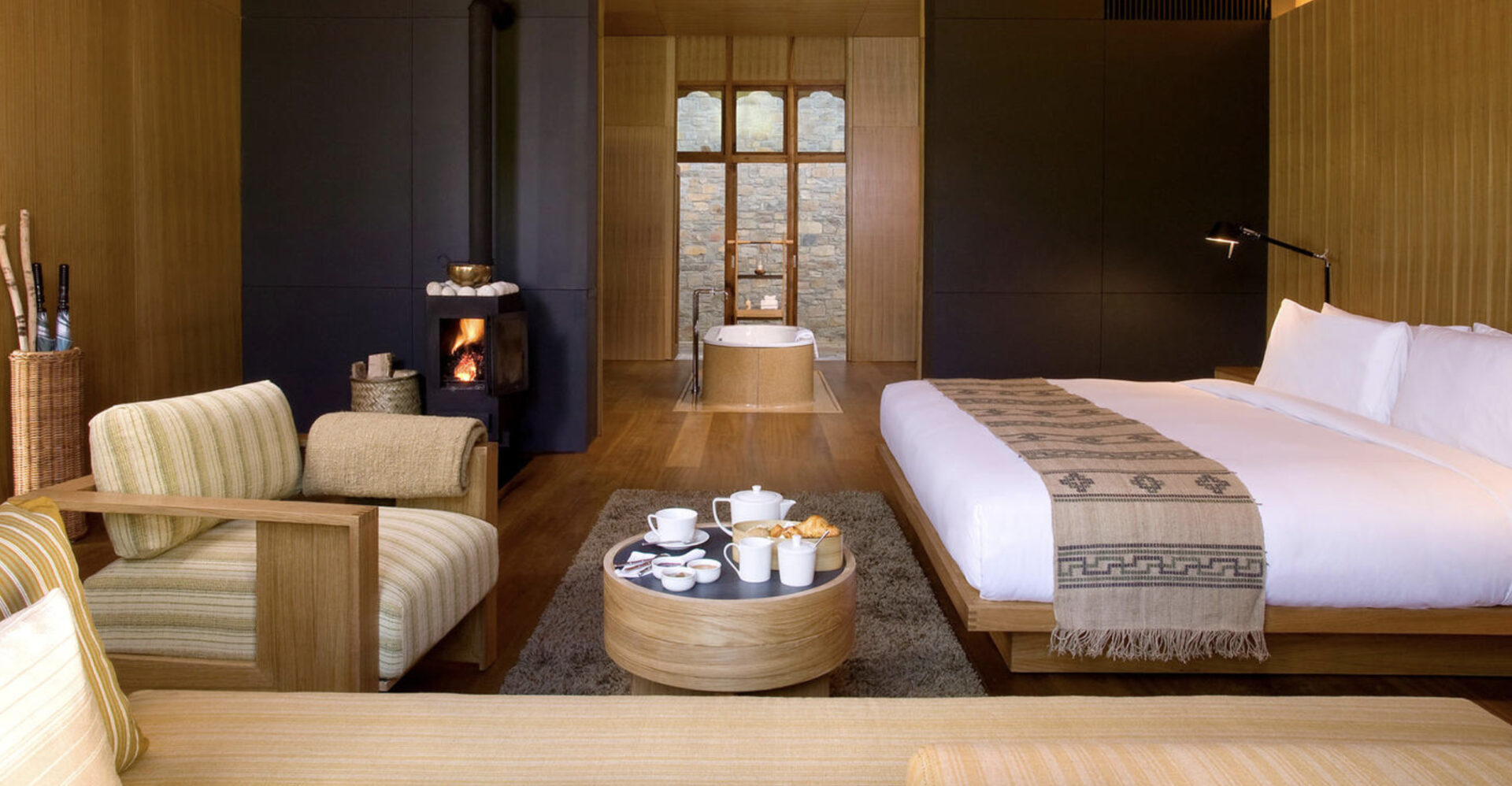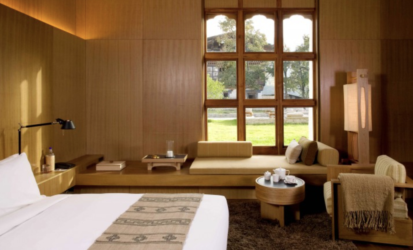 The 16-suite Amankora Bumthang Lodge rests adjacent to the Wandichholing Palace, within the town of Jakar in the Choekhor Valley. Amenities include king-size beds, traditional wood-burning stoves and banquette window-seats, while bathrooms feature terrazzo-clad bathtubs, twin vanities, a separate shower and toilet. The lodge features an impressive spa, courtyards and gardens, and a cozy dining area and bar with a fireplace.