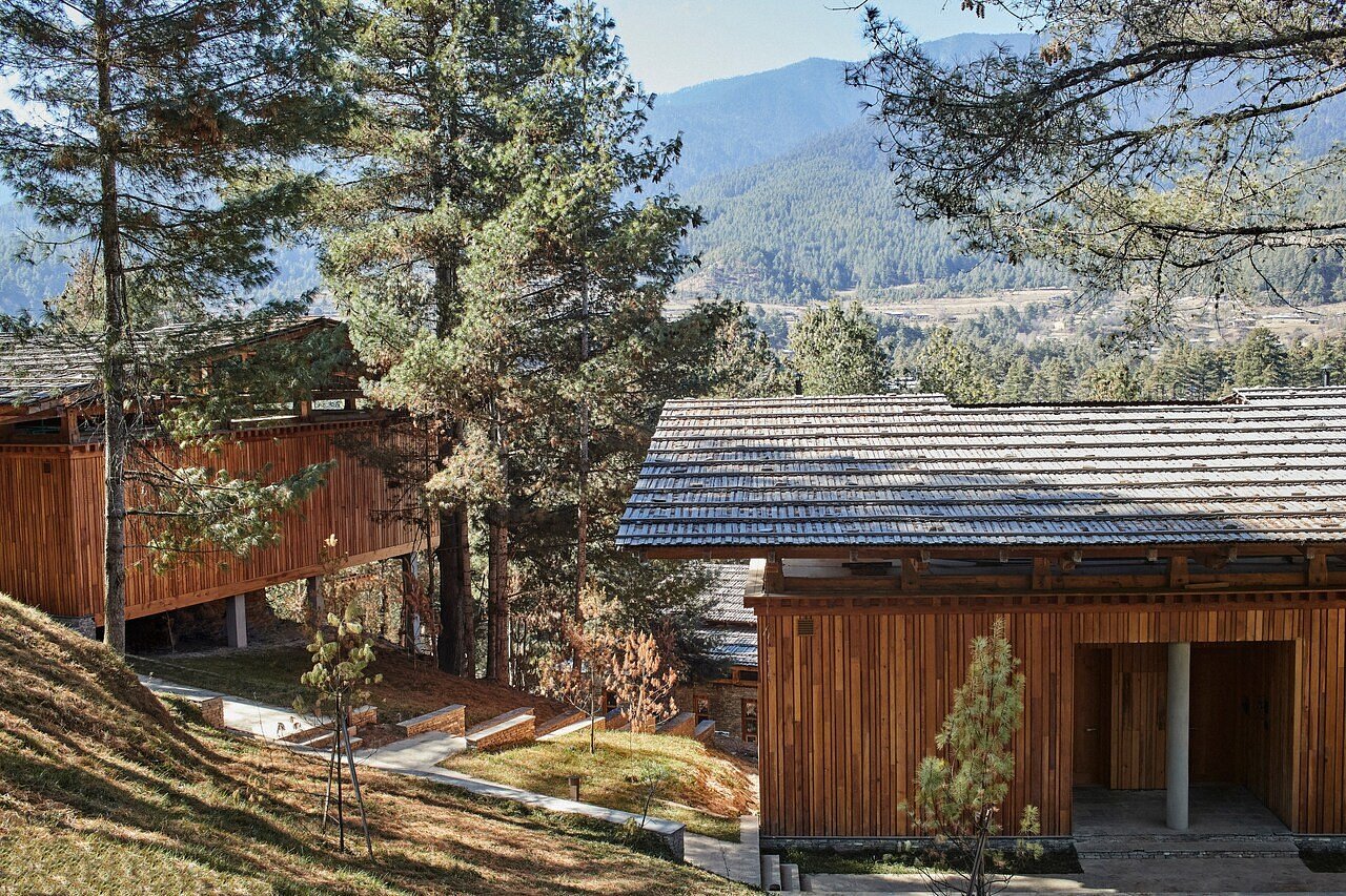 Tucked deep within a pine forest in Bhutan’s spiritual heartland, Six Senses Bumthang is designed as a “Forest within a Forest,” with its suites and villas built around the trees themselves. Interiors feature wood-paneled walls, handwoven textiles, and floor-to-ceiling windows that create a sense of harmony with the surrounding landscape. Guests can explore nearby monasteries and temples, enjoy guided walks through the valley, or return to the lodge for nourishing meals and spa treatments inspired by Himalayan traditions.