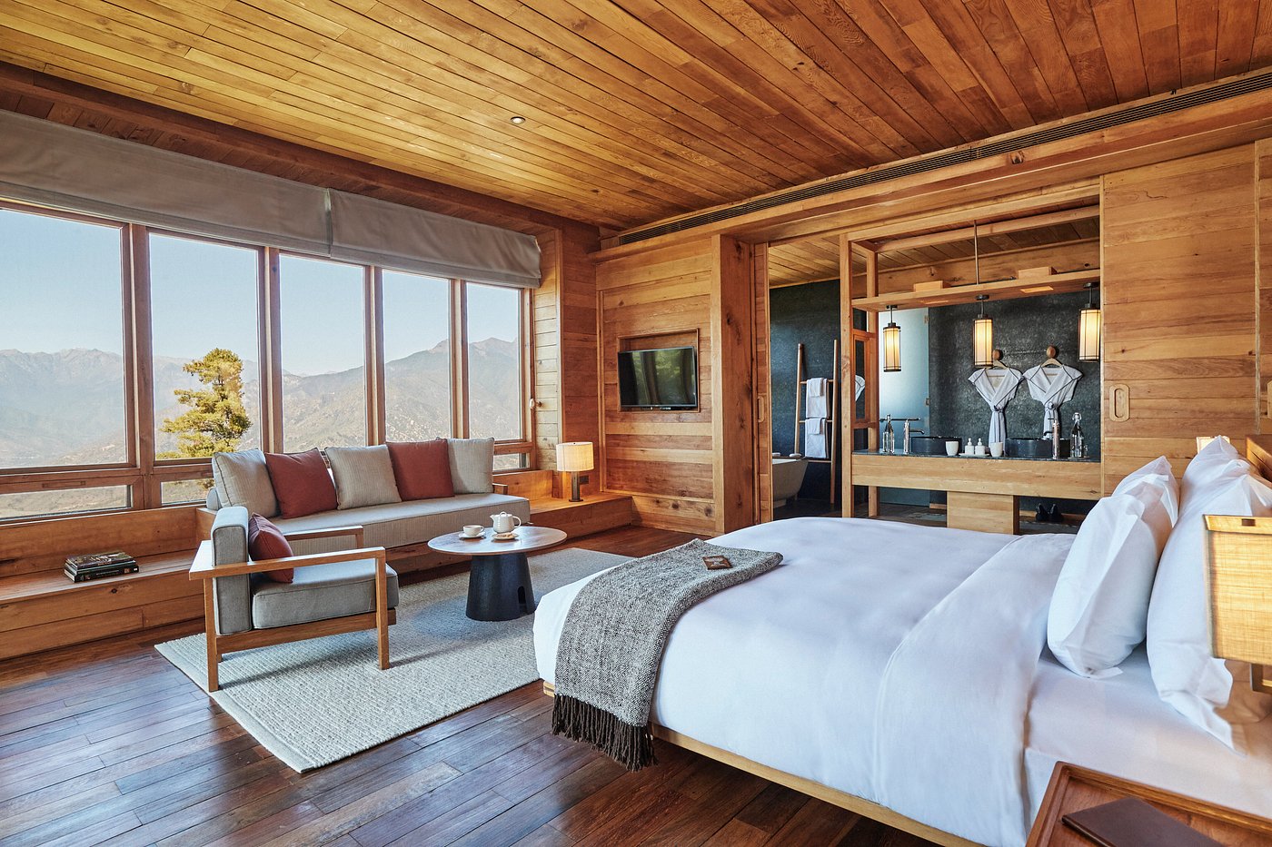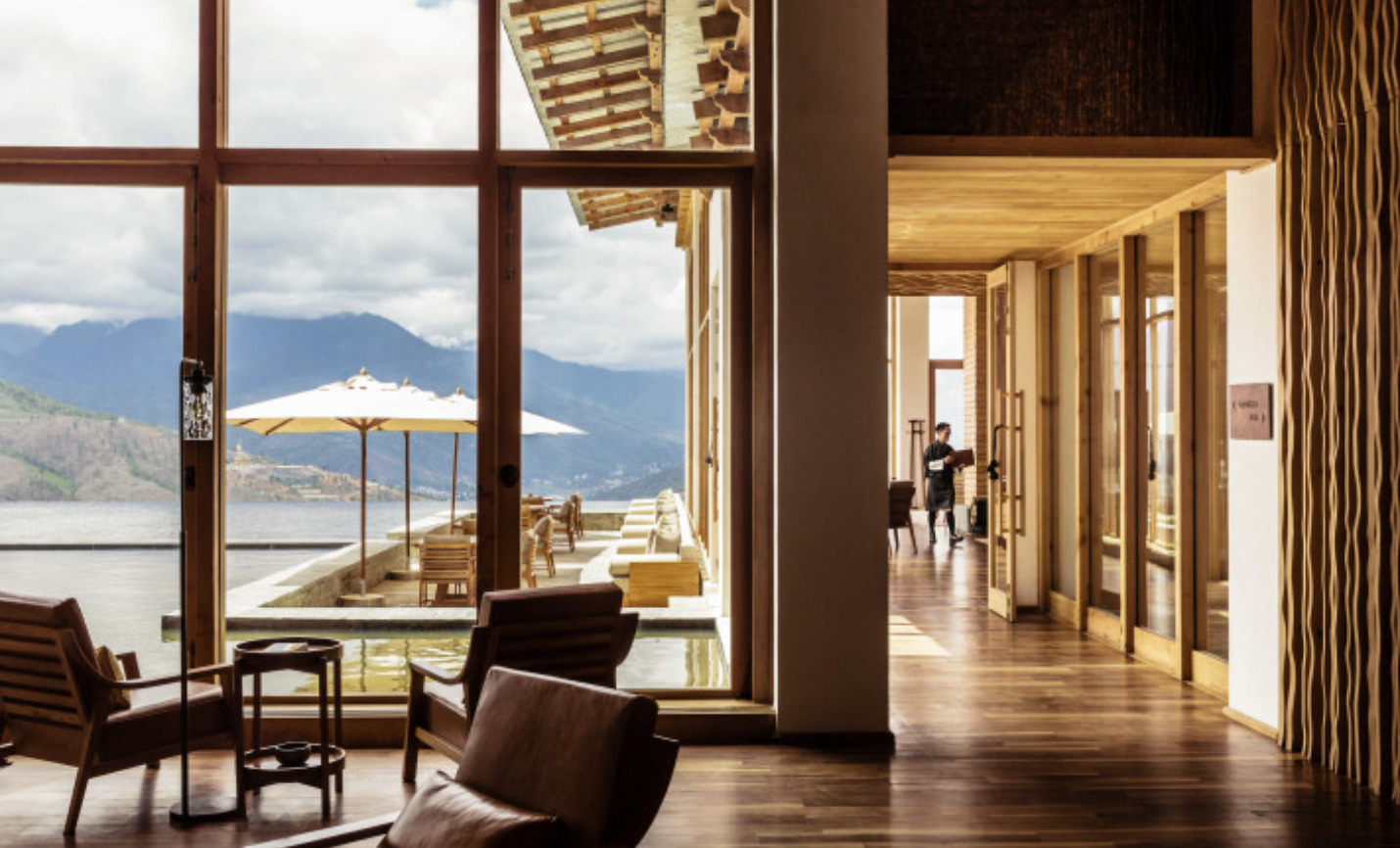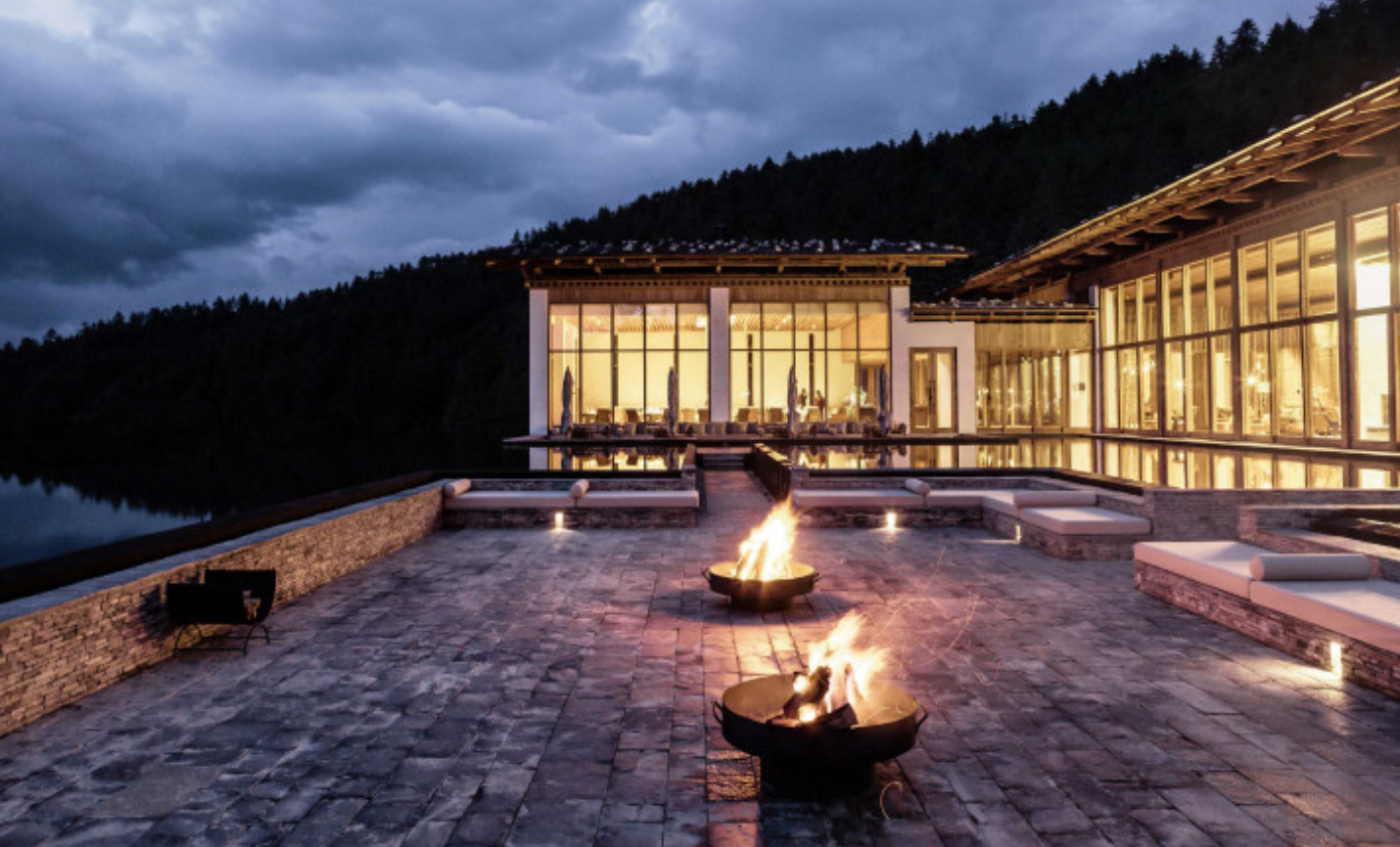 Situated within apple orchards and pine forests, yet still within reach of the capital’s attractions, Six Senses Thimphu is perched on an auspicious hillside overlooking the shimmering lights of Thimphu. Six Senses Thimphu offers 25 spacious villas and suites, starting from 721 square feet for the Lodge Suites and up to 3,358 square feet for the Three-Bedroom Villa. Yoga and meditation classes are on offer, as well as massage therapy, heated pools, a gym, hot stone baths, and a sauna. The culinary and mixology teams draw inspiration from local herbs and plants, crafting nutritious and tasty menus and cocktails at the onsite restaurant and bar.