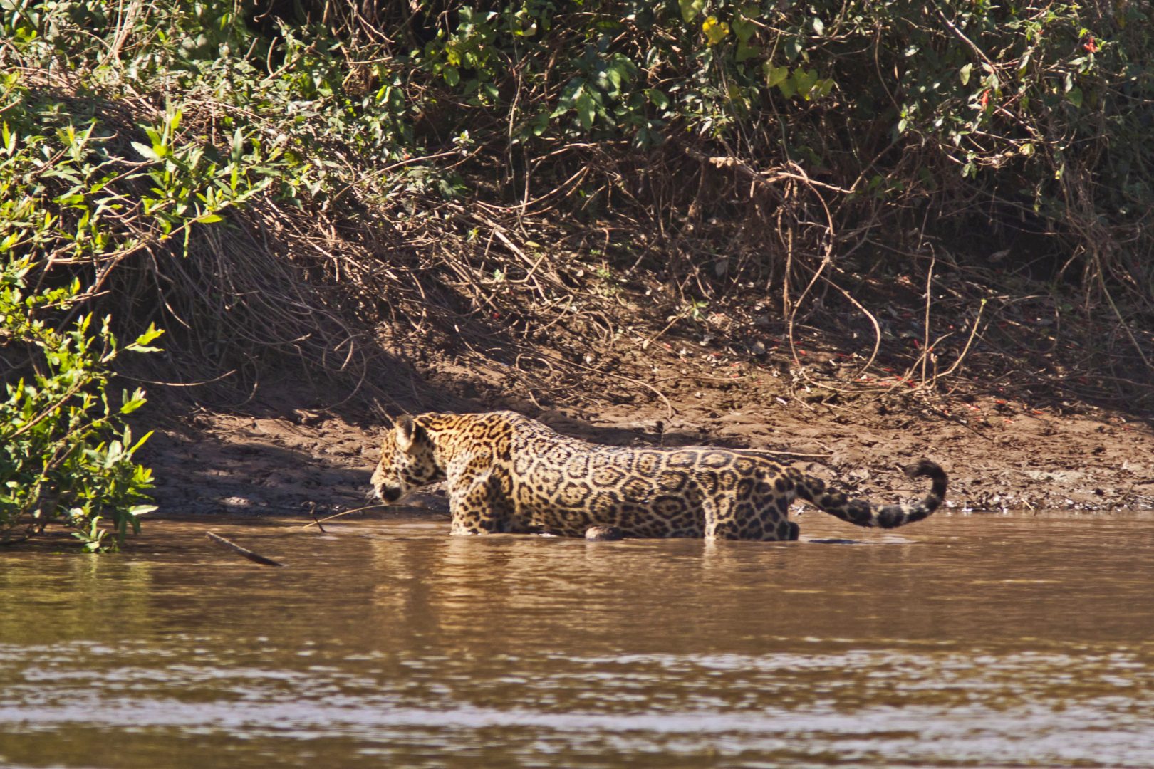 Anchored at the beginning of the Taiaman Reserve, the Jaguar House Boat is a floating base for excursions to search for jaguars in the Pantanal of Mato Grosso. The boat hotel offers nine air conditioned suites, a dining room, media area, and panoramic deck. The river safaris are carried out in aluminum skiffs with silenced motors to increase the possibility of approaching jaguars.
