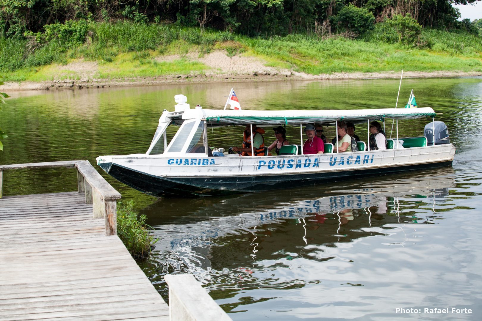 Uakari Floating Lodge sits within the Mamirauá Sustainable Development Reserve, a site recognized by UNESCO as part of the Natural Heritage of Humanity. Mamirauá Institute and the communities from Mamirauá Reserve share in the management of the lodge. Guests stay in thatched-roof floating huts, each with its own terrace, bathroom with hot water shower, two large single beds, and a terrace with a hammock. This is a real ecotourism lodge: accommodations are comfortable, but basic. Rooms have solar powered lights and showers with solar heated water. Meals are plentiful and very well prepared.