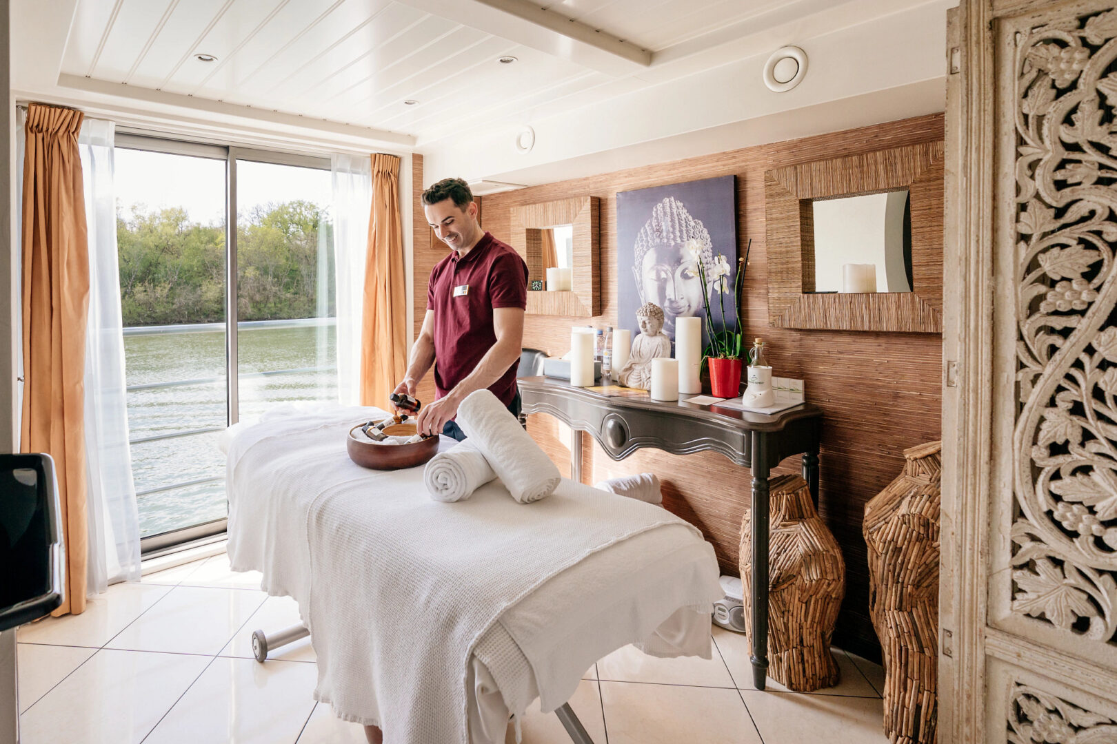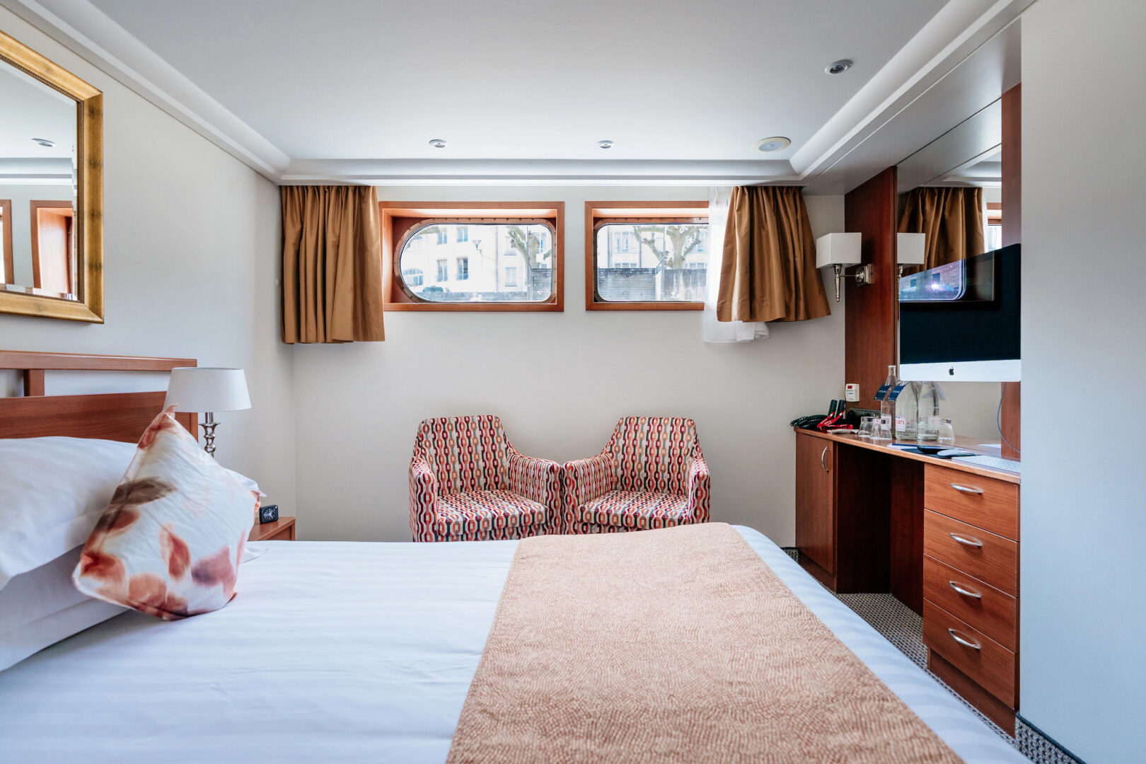 The AmaCello is a luxury river cruise ship with 73 staterooms, most featuring French balconies for panoramic views. Onboard amenities include a main lounge and bar, a specialty Chef’s Table restaurant, and a sun deck with a whirlpool and shaded seating areas. Guests can enjoy a fitness room, spa and hair salon, sauna, and bicycles available for exploring ports along the route. Cabins are equipped with marble bathrooms with multi-jet showerheads, an Entertainment-on-Demand system, Wi-Fi, climate control, a safe, and daily bottled water.
