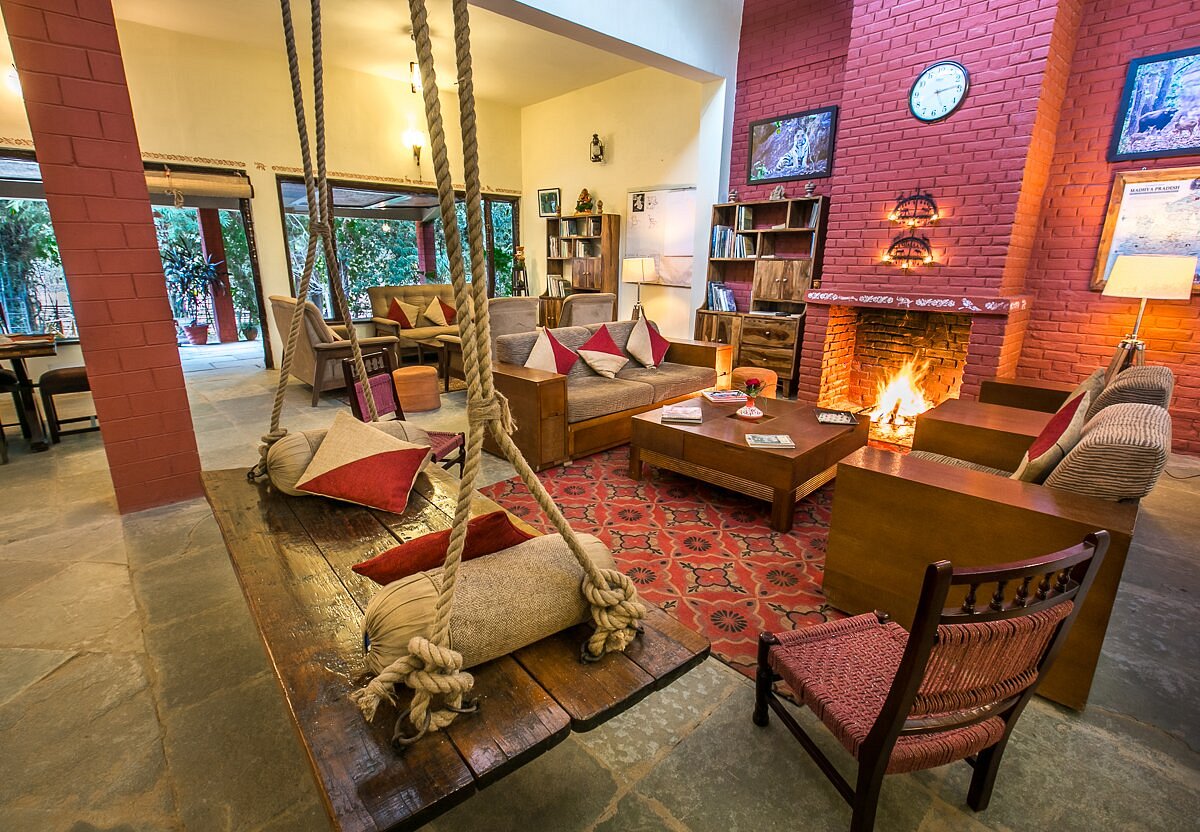 Located within walking distance of Bandhavgarh National Park’s main gate, Bandhavgarh Jungle Lodge has twelve thatched double–bedded cottages around an inner courtyard. There are two separate villas with further accommodations of eight rooms. A spacious thatched dining room serving home cooked Indian food and Continental cuisines becomes the center point of activities like campfire performances, lectures, and star gazing. The estate has meadows that attract deer and fruit trees that are home to birds and butterflies. An occasional alarm call from the jungle close by alerts you when tigers are nearby.