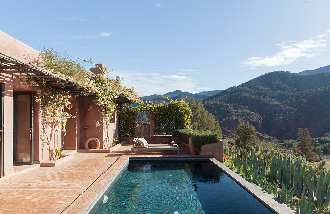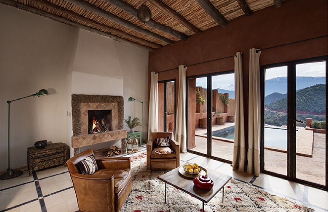 Set at the mouth of the stunning Ourika Valley in the High Atlas Mountains of Morocco, this stylish boutique hotel has panoramic views across green fields, fruit trees, and olive groves to distant and dramatic snowy mountain peaks. Each uniquely decorated room has a private terrace from which to soak in the views, a true retreat from the fast-paced cities below. Combining modern touches with traditional décor, the result is breathtakingly sumptuous suites where you can enjoy the scenery in the utmost luxury.