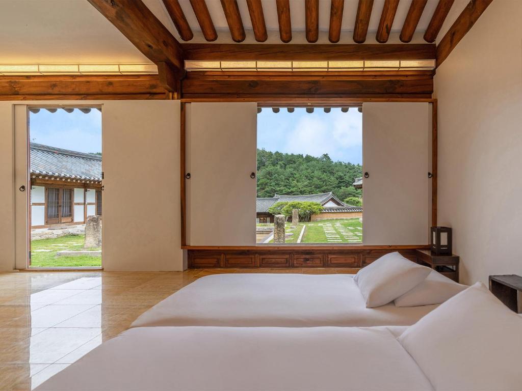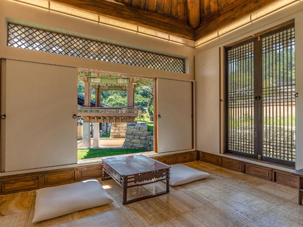 Rakkojae Andong Hahoe is a traditional Korean hanok stay located within the UNESCO-designated Hahoe Folk Village. Set in a restored 600-year-old aristocratic residence, the property offers a unique opportunity to experience Korea’s cultural heritage in an authentic setting. Guests sleep on heated ondol floors in rooms furnished with handcrafted decor and traditional architectural details. While the accommodations are simple, they include modern comforts like air conditioning and private bathrooms. Meals featuring local Andong cuisine are available on request, and the surrounding village provides a quiet, immersive backdrop for exploring Korean history and tradition.