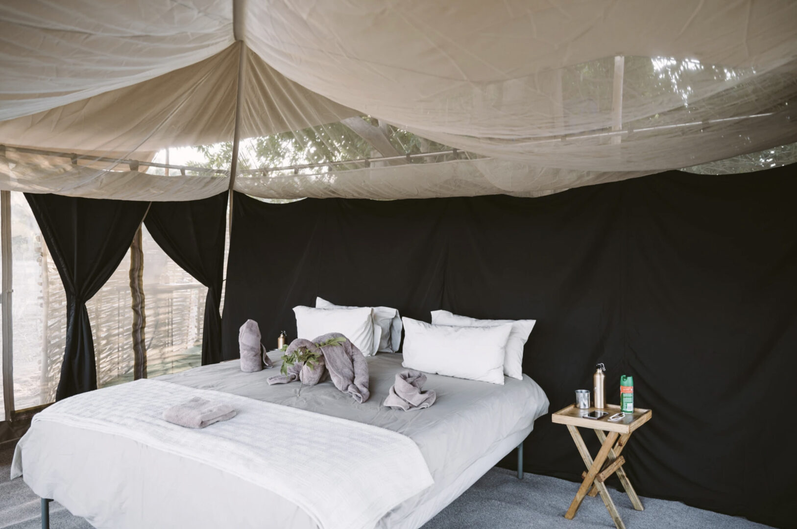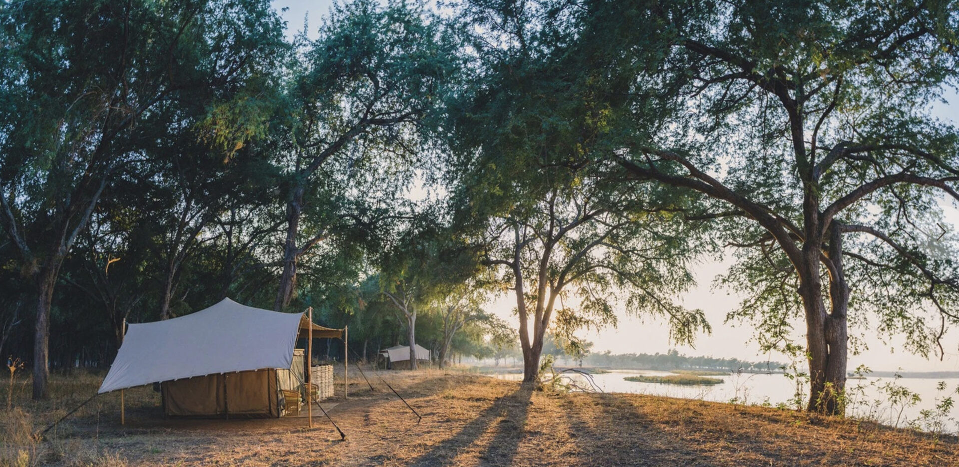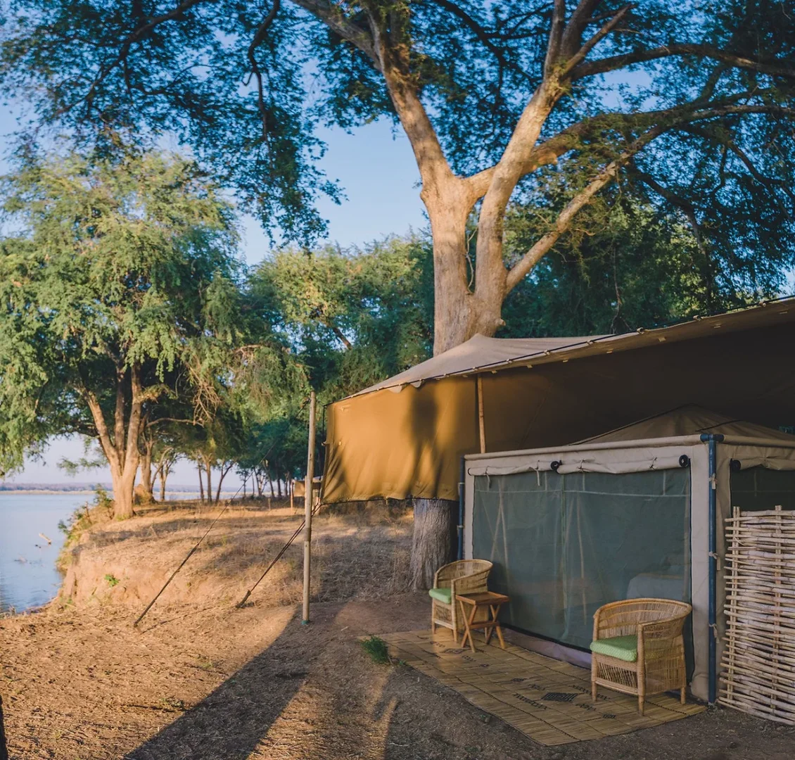 Kutali is a comfortable tented camp with all the luxuries one could wish for, but with the charm and ethos of a true seasonal bush-camp. There are just 5 guest tents, and the camp caters for no more than 10 people at once. Each tent is carefully and expertly located for the best possible views across the Zambezi River. The Kutali tents are bespoke and very comfortable, with high quality linen and mattresses, alongside flushing toilets, running water taps and traditional bucket-showers. A main area stretch-canvas tent set beneath the towering Winterthorn trees makes for an exceptional location for meals, reading, charging cameras, and wildlife watching.