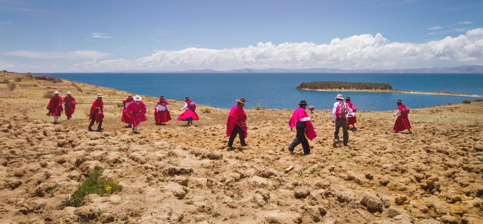 tint_Bolivia_Max Aliaga_Natives-in-red-dresses-and-blankets-near-lake