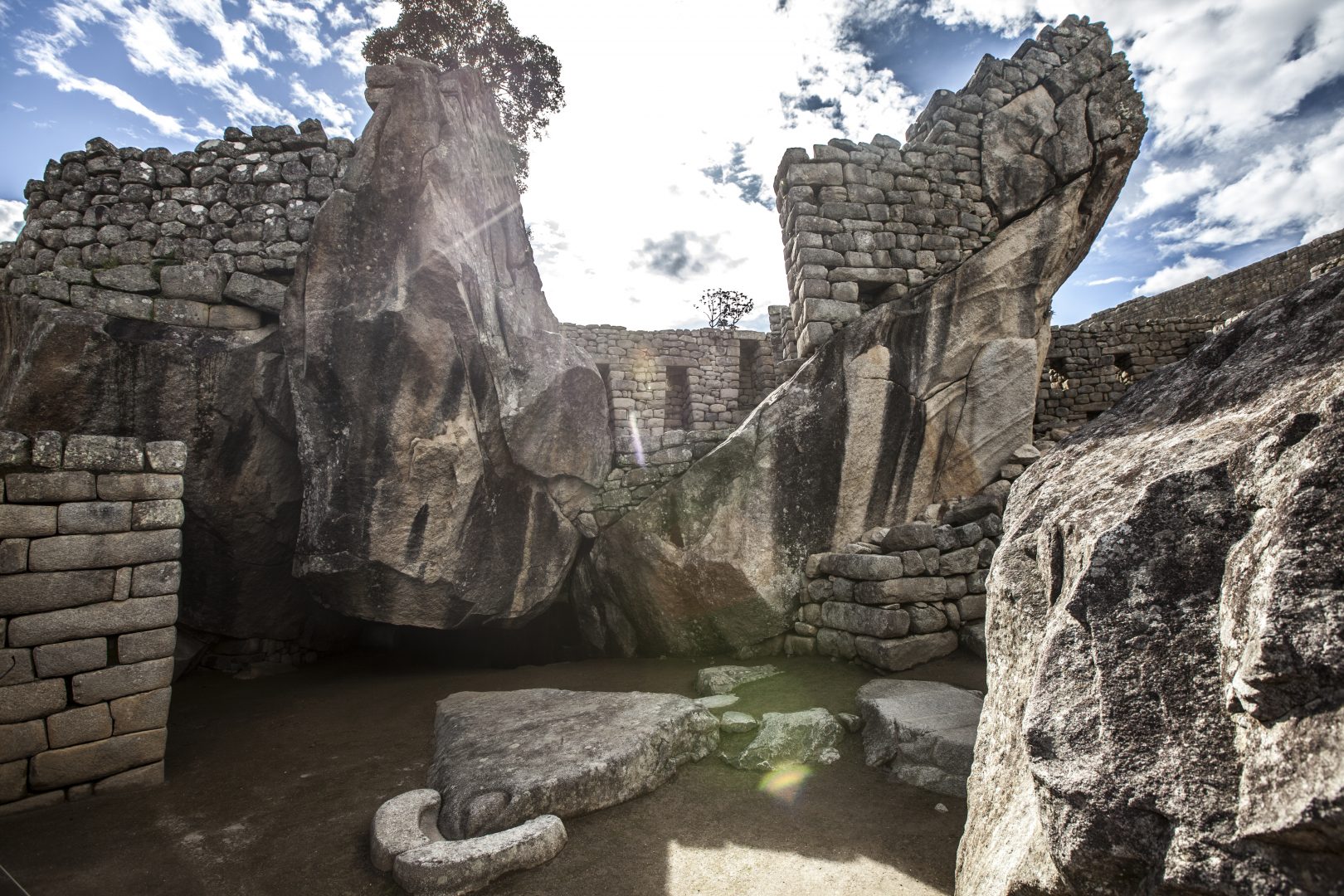 Sun behind the ruins at Machu Picchu