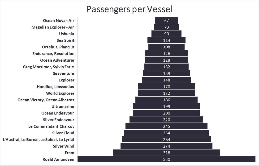 Vessel class: We separate the vessels into three main categories: Luxury Vessels, Premium Expedition Vessels, and Expedition Vessels. Luxury vessels were designed or refurbished for tourism, and tend to have more modern features and amenities, with fine dining and more of a “hotel” feel. Premium Expedition Vessels provide very comfortable surroundings and first-class service while maintaining the feel of a ship that is designed for expedition cruising. Expedition vessels are more utilitarian vessels that are built for expedition cruising and provide good service with comfortable but basic accommodations. Below you will find the vessel list broken down by class.