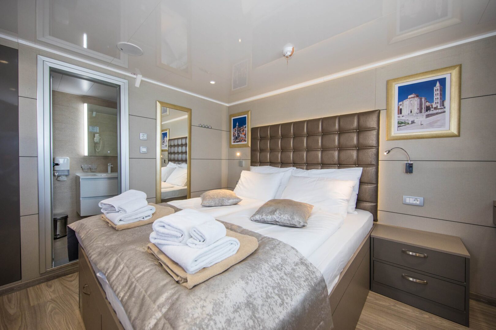Main deck cabins: 14-15 sqm, regular windows, and ensuite bathroom.