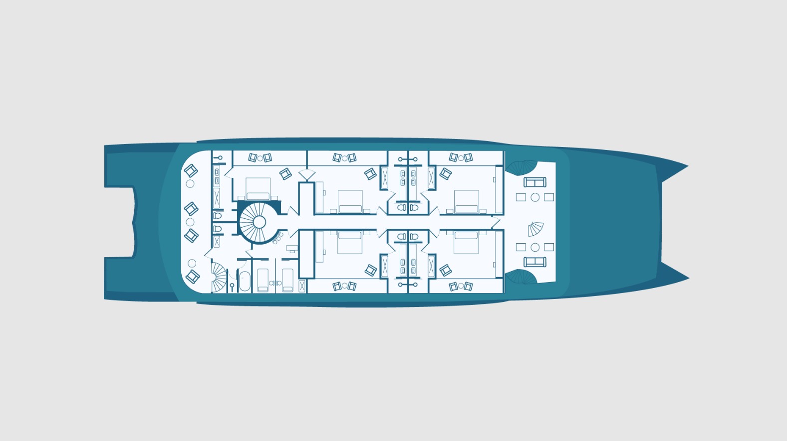 • 1 Single Stateroom: located on the Upper Deck. Please note the single stateroom accommodates additional travelers who are part of an odd-numbered group. This cabin is not available to solo travelers.