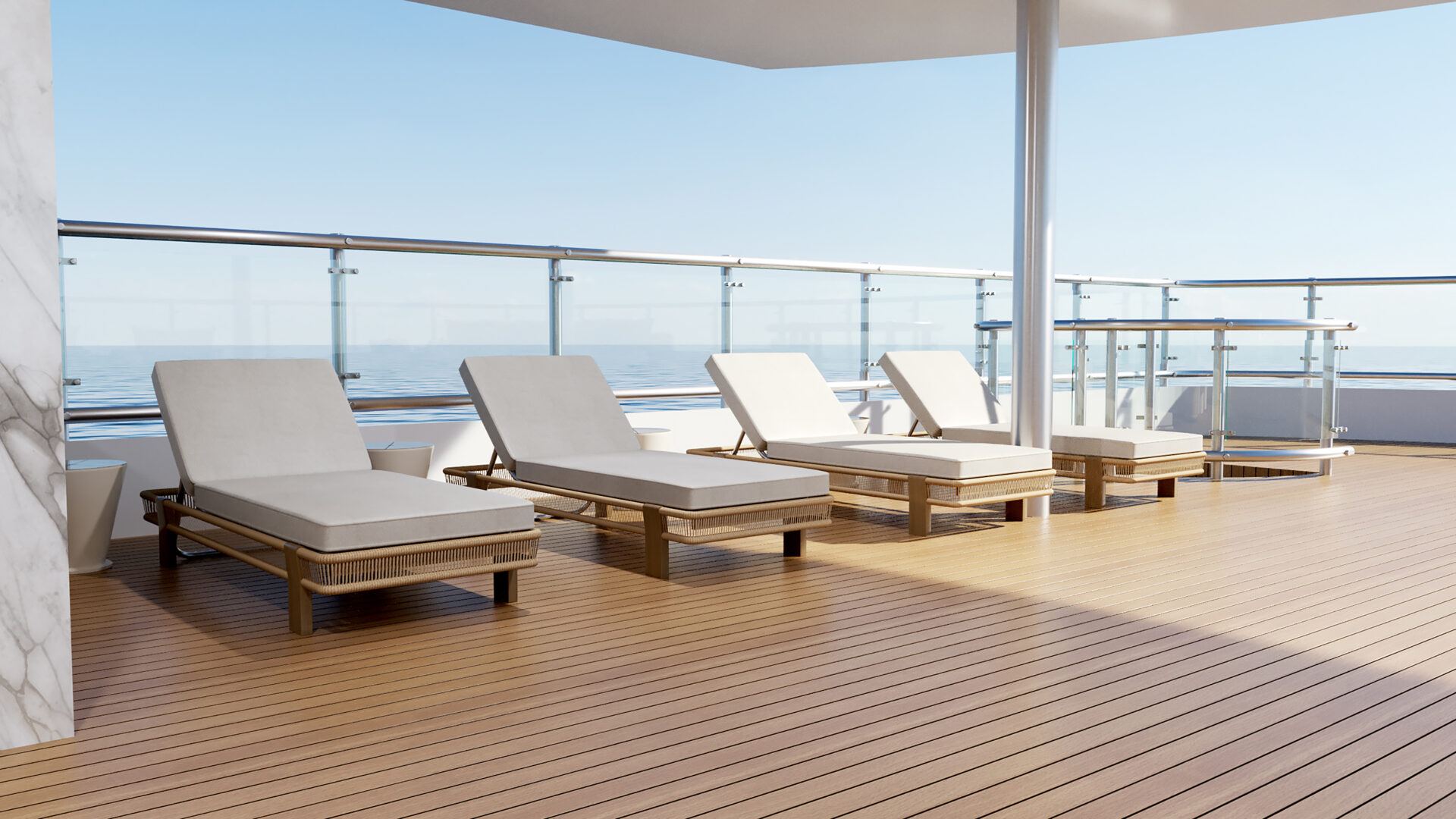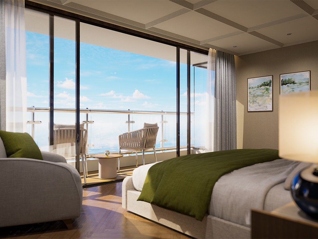 • All suites have private bathrooms, private balconies, individual climate controls and ample storage space for clothing and luggage.