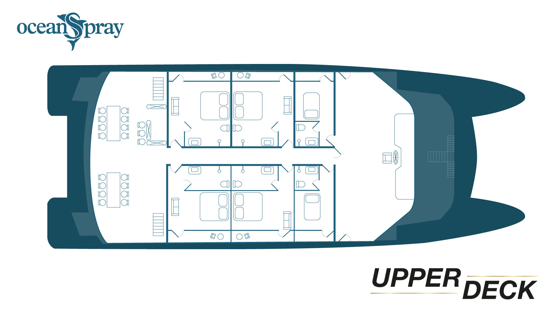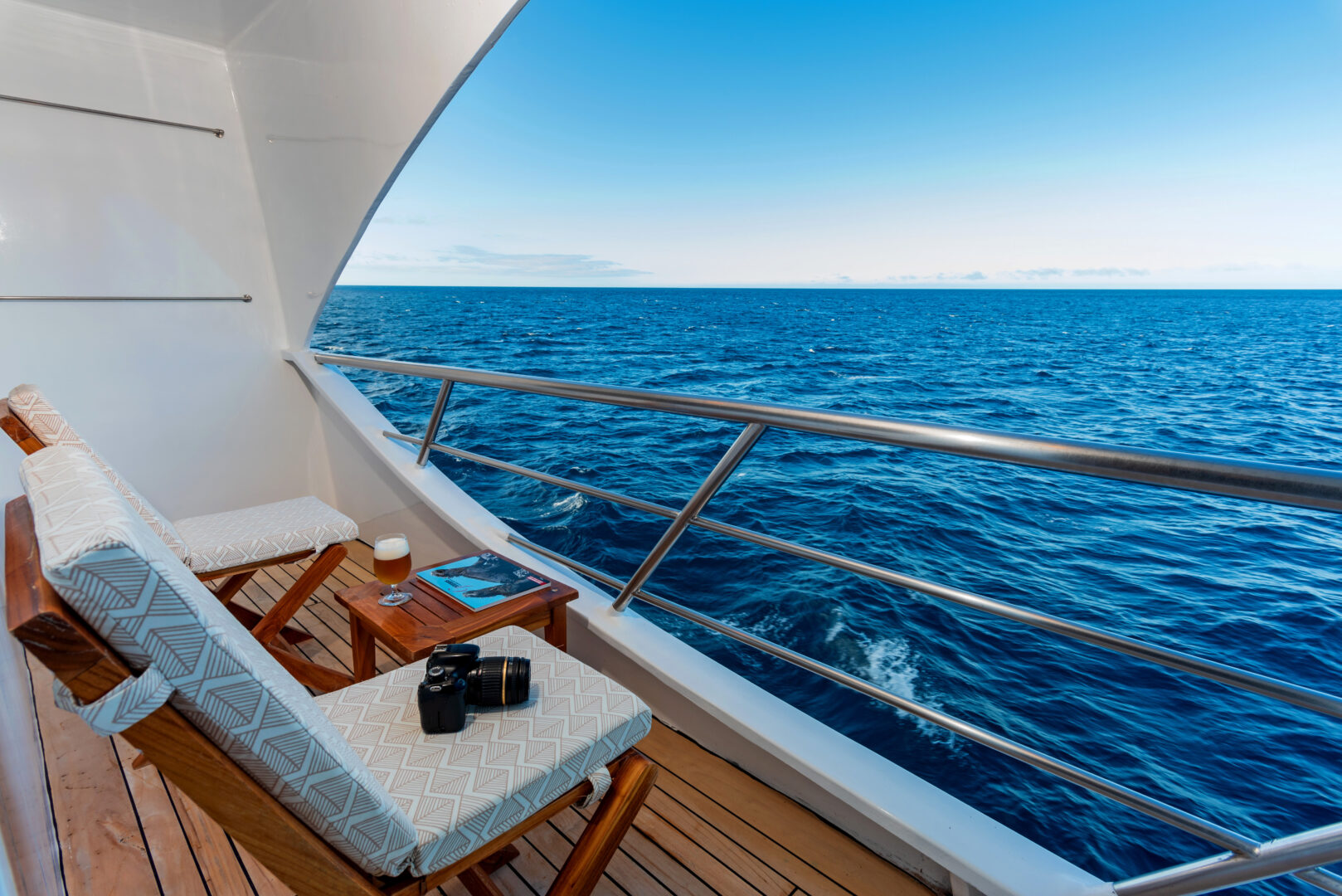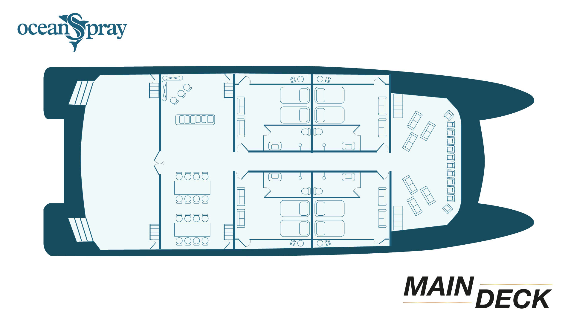 The Ocean Spray is a standout among Galapagos catamarans. Each cabin features a private balcony, allowing you to take in the islands’ dramatic landscapes from the privacy of your room. With a large sundeck, inviting social areas, and smooth performance at sea, the Ocean Spray feels both refined and relaxed. Guided daily excursions—led by expert bilingual naturalist guides—include snorkeling with sea turtles, hiking across volcanic terrain, kayaking quiet coves, and paddleboarding calm coastal waters. Consistently praised by past travelers, this is one of the most sought-after ships for exploring the Galapagos Islands.