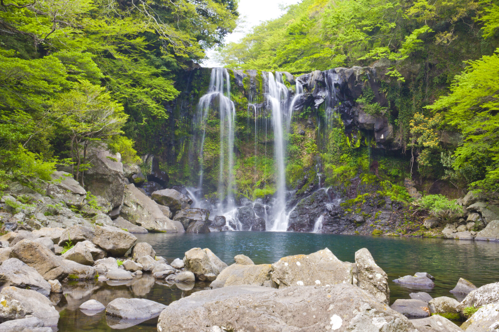 Spend the day exploring Jeju’s southern coast. The day begins with a visit to Jeongbang Falls, one of the few waterfalls in Asia that flows directly into the sea. Admire the falls and the spectacular surroundings, with dramatic cliffs, lush vegetation, and the sound of crashing waves from the nearby shore.