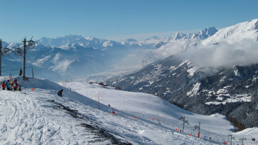 At an altitude of 1,500 to 3,000 meters above sea level, the south-facing ski resort of Crans-Montana offers 140 kilometers of marked slopes and breathtaking panoramic views. The varied slopes for all levels extend from the mountain tops over the Plaine Morte glacier to the golf on the “Haut-Plateau.” The resort is also famous for the World Cup ski races that take place here, high above the Rhone Valley, every winter.